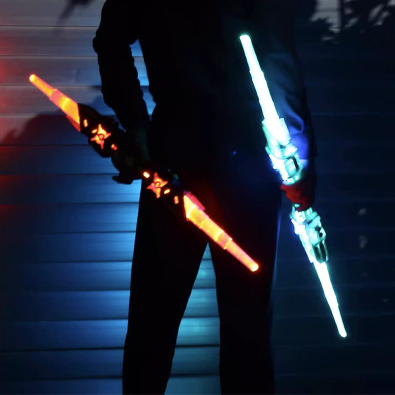 7-COLOR EXTENDABLE LIGHTSABER - This light sword is dual-end extendable, with 72cm in length when singularly extended, and up to 105cm when fully expanded. Its versatility promises endless fun and entertainment.