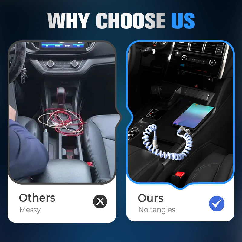 NO MORE CABLE CHAOS - Tired of wrestling with knotted cords? The self-retracting spring design keeps your cable neatly coiled and ready in an instant. Just pull, use, and let go—it tucks itself away like magic. Compact yet sturdy for daily grabs, it stays put while you focus on the drive.