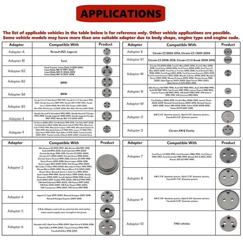PROFESSIONAL AUTO BRAKE REPAIR TOOLS: Designed for efficient rewind operation of brake cylinder pistons, this tool facilitates pressure back to the brake cylinder piston, brake pump adjustment, and replacement of brake pads.
