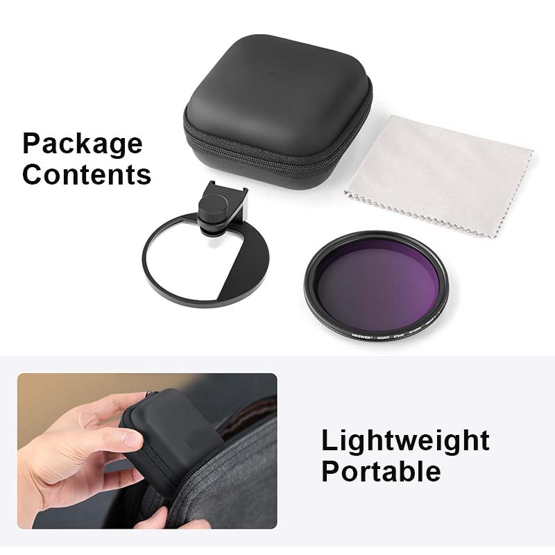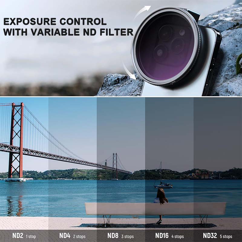 EXPOSURE CONTROL WITH VARIABLE ND FILTER - Easily rotate to adjust the light reduction from ND2 to ND32 (1 to 5 stops) for perfect balanced lighting. Capture every valuable moment with magnificent motion blur, true to life vivid colors, and undoubted sharpness.