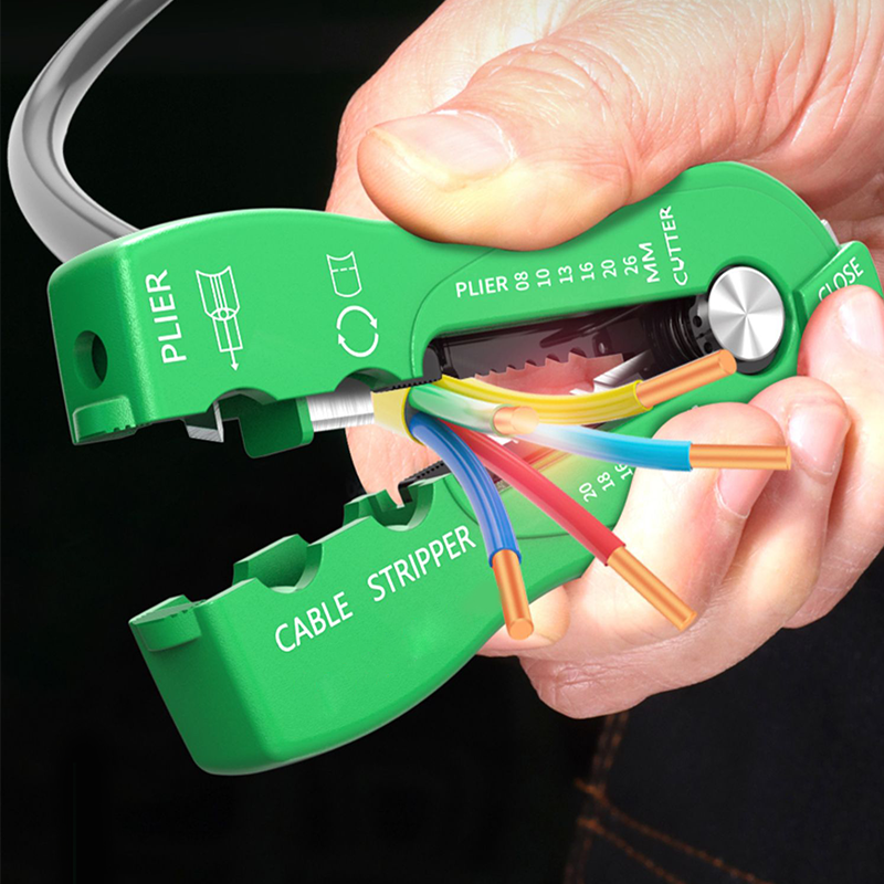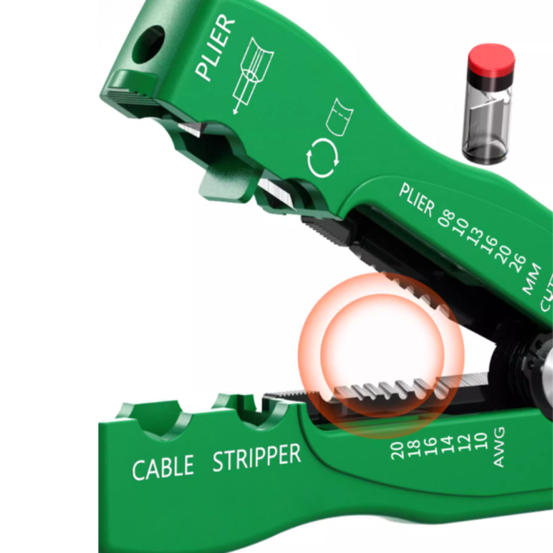 UNIVERSAL CABLE PREP: Strip, cut, grip, and peel coaxial cables (0.8–2.6 mm²) and UTP/STP Cat5–Cat6 Ethernet with a single tool—no extra gadgets required.
