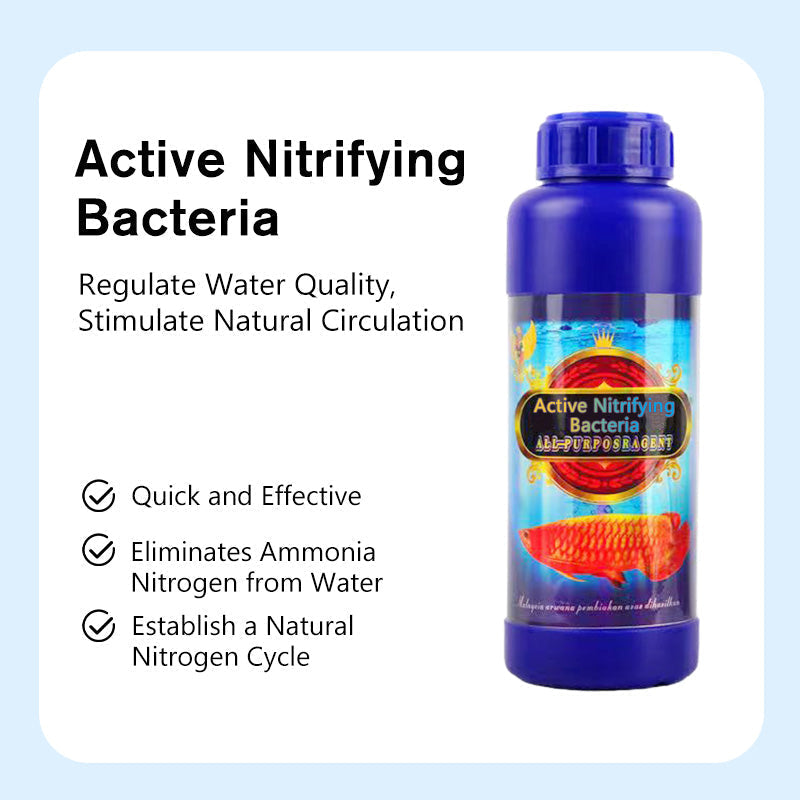ACTIVE NITRIFYING BACTERIA: Introduces essential beneficial bacteria to establish and maintain a balanced ecosystem, aiding in the breakdown of organic waste and preventing harmful ammonia spikes.