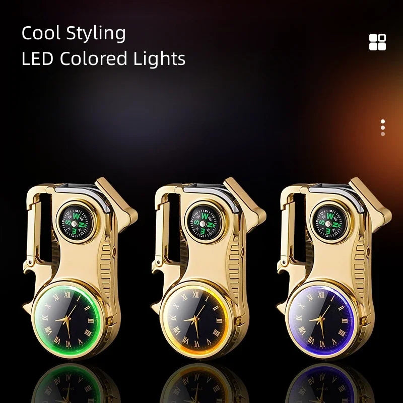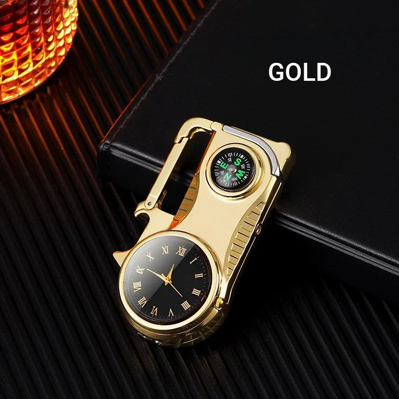 MULTIFUNCTIONAL DESIGN - The 4-in-1 Windproof Metal Butane Compass Watch Keychain Lighter is the ultimate accessory for outdoor enthusiasts. Combining a butane lighter, compass, watch, and keychain, this sleek gadget offers everything you need for your adventures in one compact design, ensuring you’re always prepared for the unexpected.