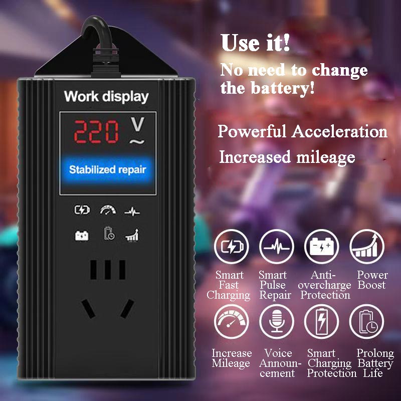 MULTI-FUNCTION CAPABILITIES: Designed for charging, repairing, maintaining, activating, and detecting various electric batteries for electric motorcycles, vehicles, and mowers. With intuitive controls and clear indicators, this charger is easy to use, making it suitable for both beginners and experienced users.