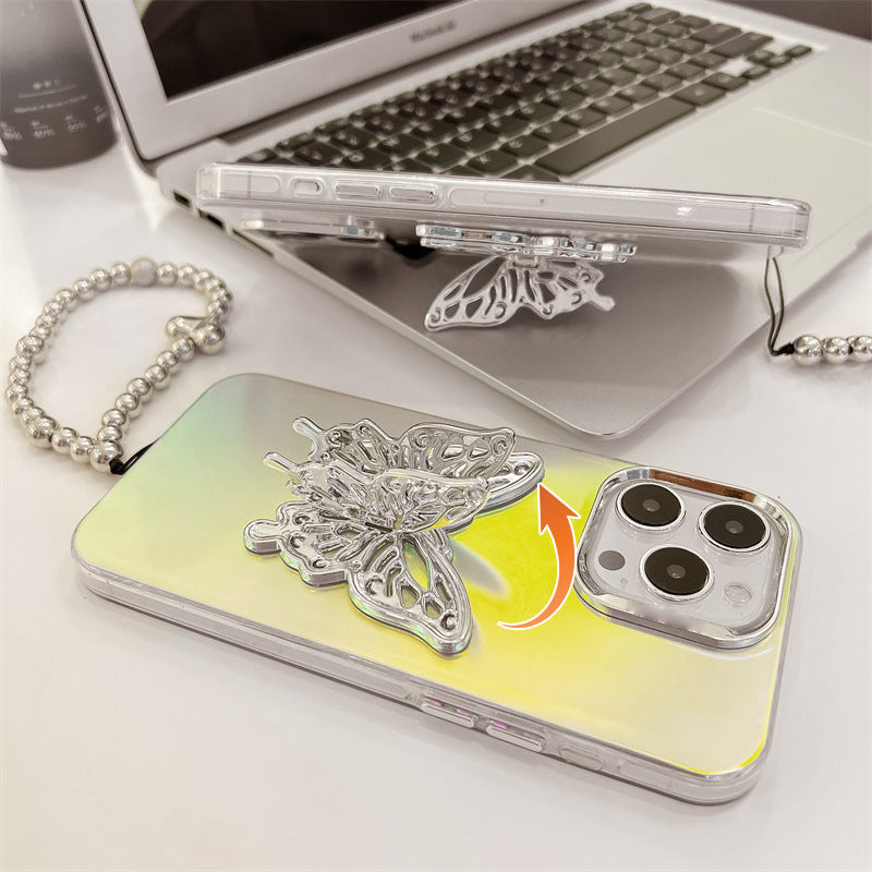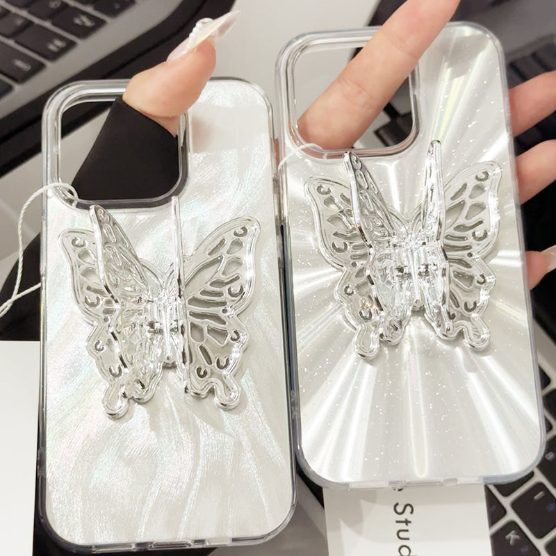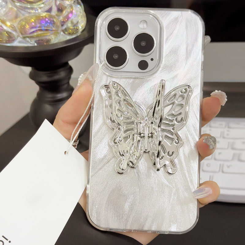 Butterfly Stand Metallic Gray Phone Case for iPhone11/12/13/14/15
