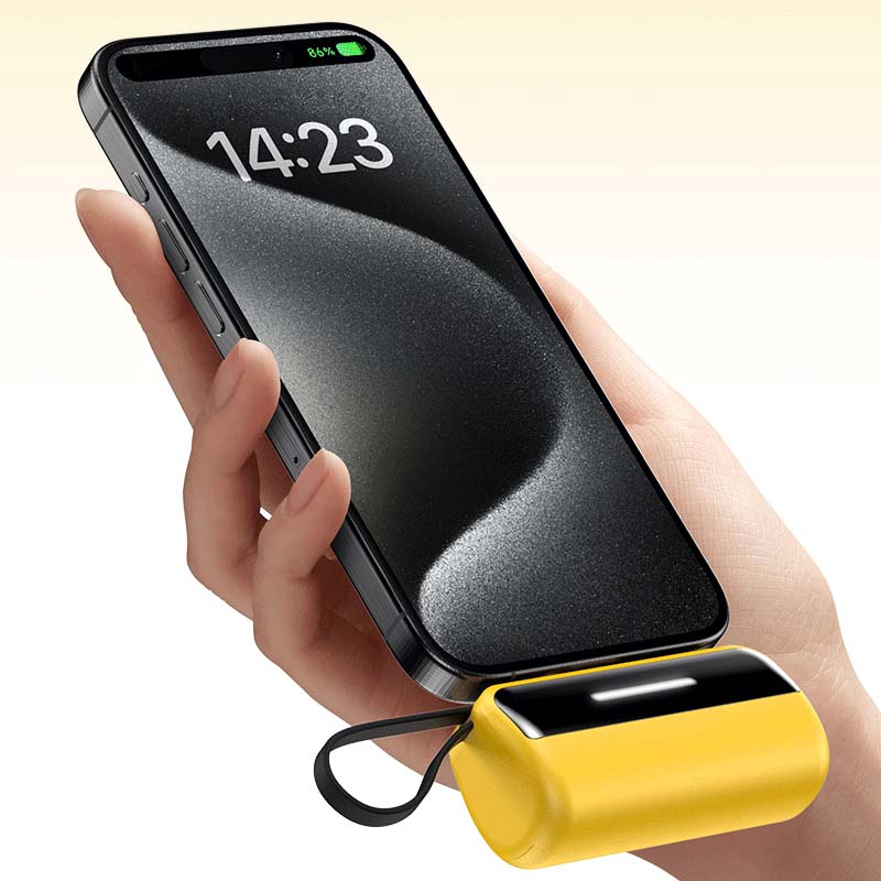 COMPACT AND CONVENIENT: With its lipstick-like size, this power bank is incredibly compact and fits easily into your pocket or bag. It’s designed to accommodate phone cases, ensuring that even with a case on, your phone can be charged seamlessly. It's also safe for air travel.