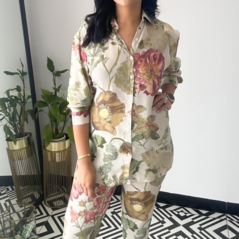 VIBRANT FLORAL PRINT - The Casual Floral Print Two-Piece Set features a striking and colorful floral design that adds a touch of elegance and playfulness to your wardrobe. The print is designed to stand out while remaining versatile enough for a variety of occasions.
