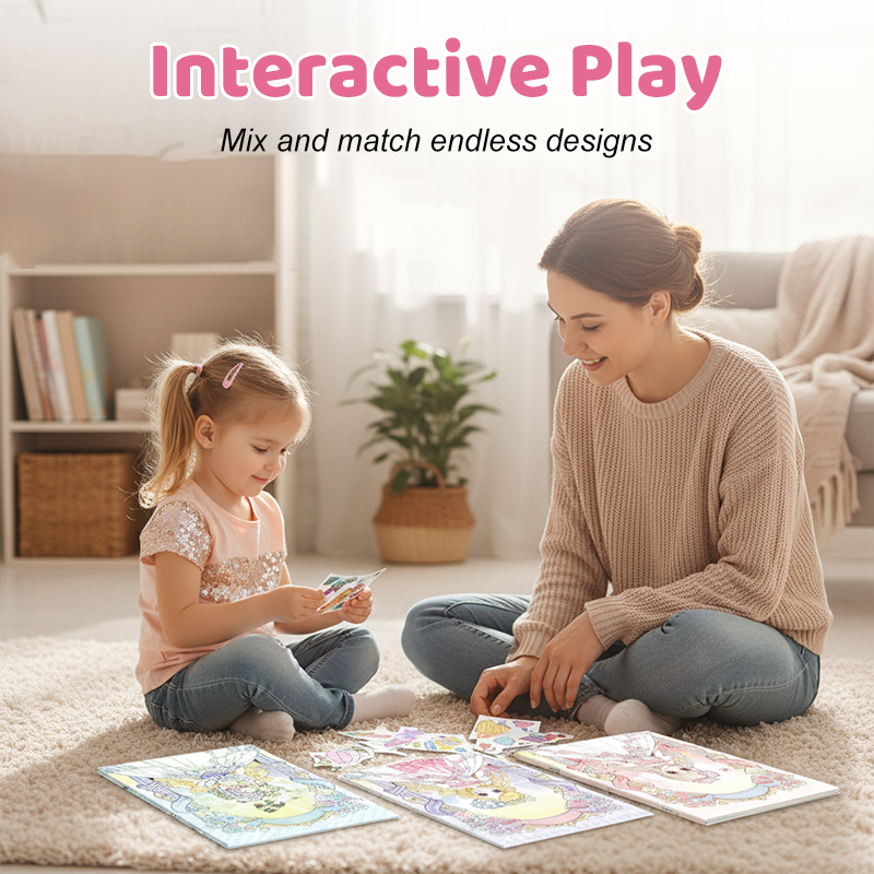 INTERACTIVE ENGAGEMENT – Each sticker scene invites active participation, allowing children to design, remove, and restyle characters repeatedly without mess or frustration. The tactile interaction improves fine motor skills and focus.
