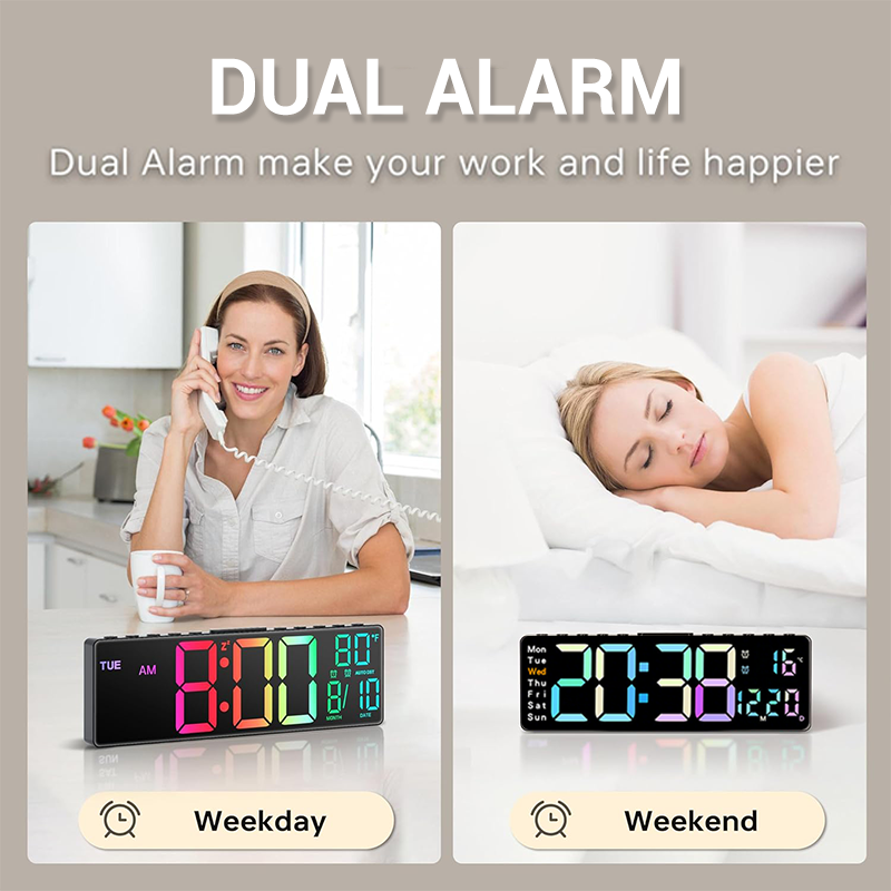 DUAL ALARM SETTINGS AND TIMER AND COUNTDOWN FUNCTIONALITY: Set two separate alarms with versatile options for single, double, or daily use. Ideal for managing wake-ups, tasks, workouts, or cooking with ease, thanks to the built-in timer and countdown.