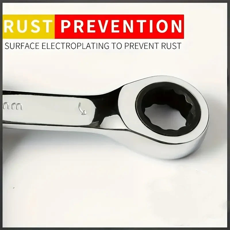 DURABLE CR-V STEEL: Crafted from premium CR-V steel, this ratcheting wrench set is highly durable, wear-resistant, and built to last, providing reliable performance for various tough working environments and long-term use.