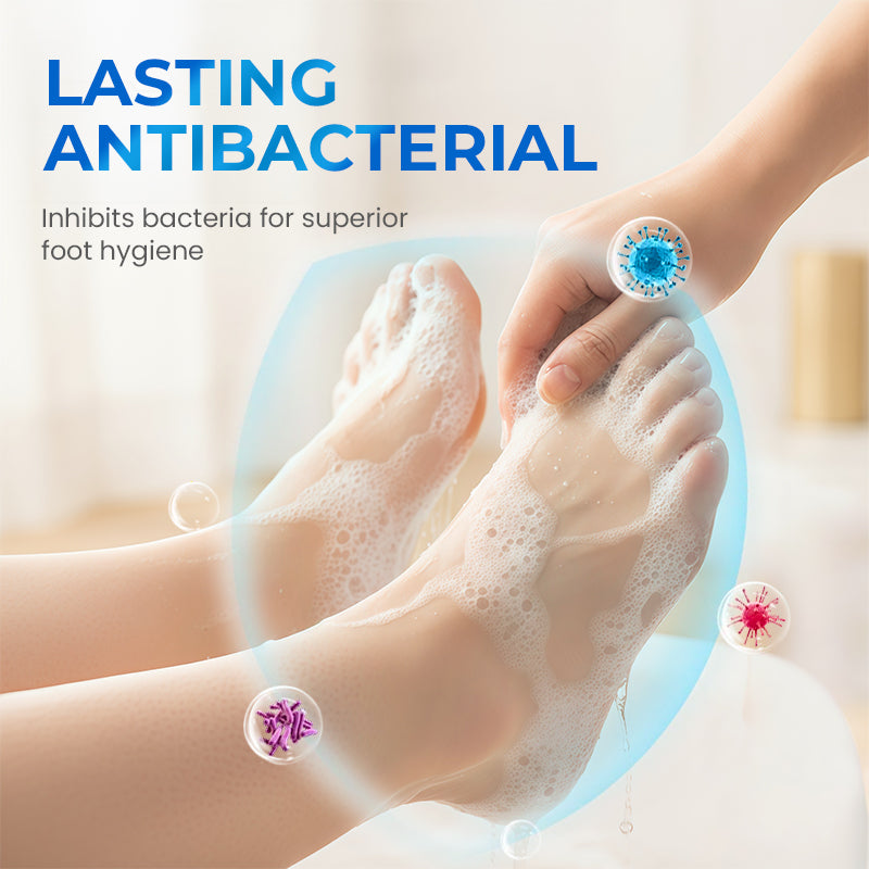 ANTIBACTERIAL PROTECTION: Creates a lasting antibacterial barrier that helps inhibit bacterial growth, ensuring long-term foot hygiene and protection from odor-causing microorganisms with consistent use.