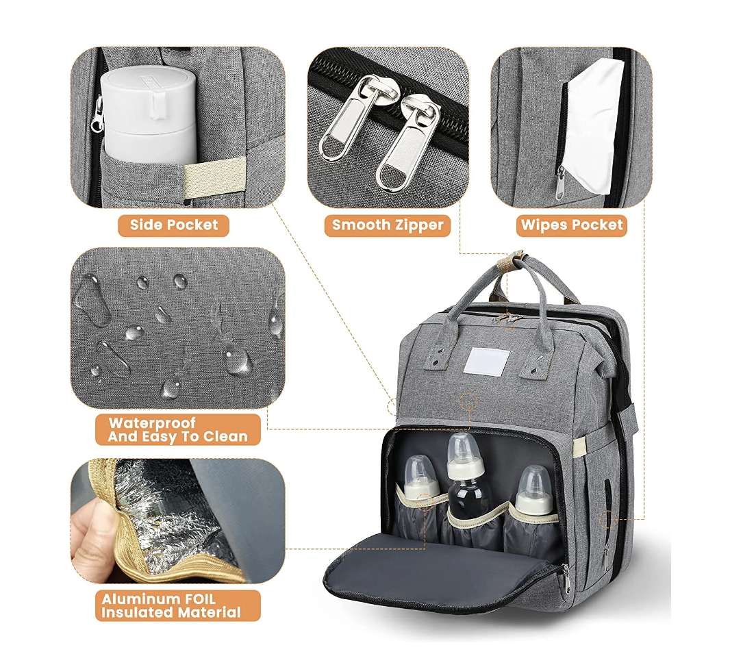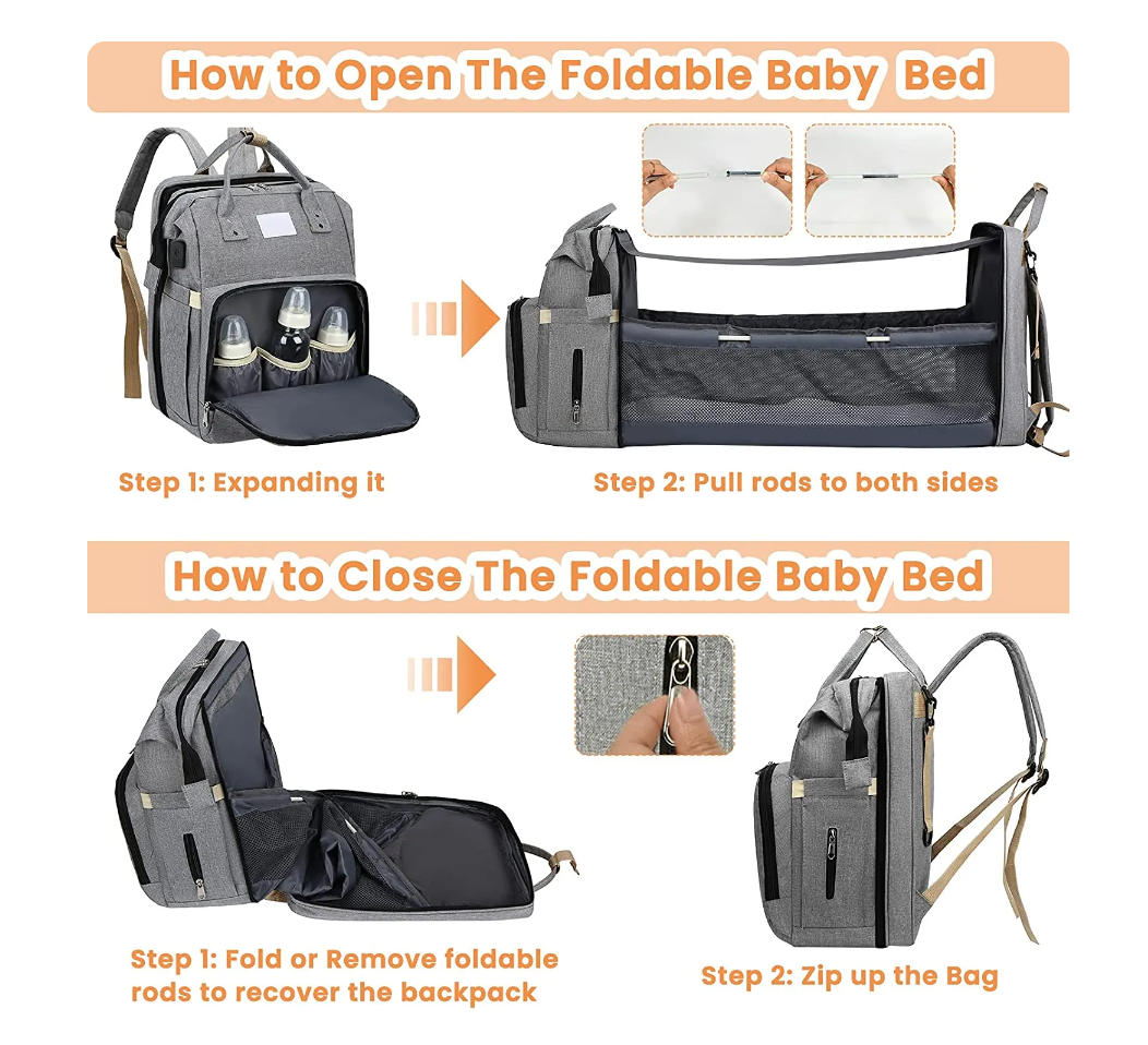 👼🎒Folding Baby Bed Shoulder Mommy Bag - One Pack for Dual Use: Mommy Bag+Portable Baby Bed