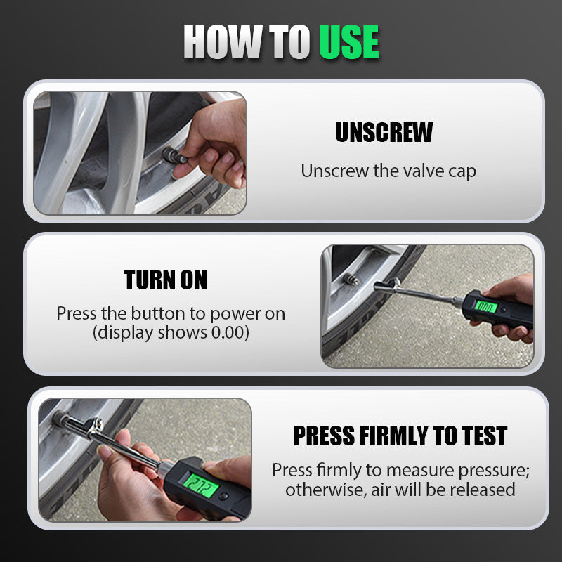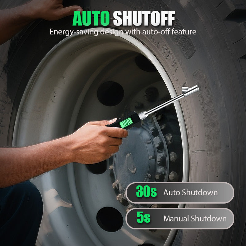 ENERGY-SAVING AUTO SHUTOFF – The gauge automatically powers off 30 seconds after use to preserve battery life. For manual shutdown, simply press and hold for 5 seconds.