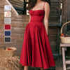 💕Spring New💃Spaghetti Strap Pleated Corset Midi Dress with Pocket