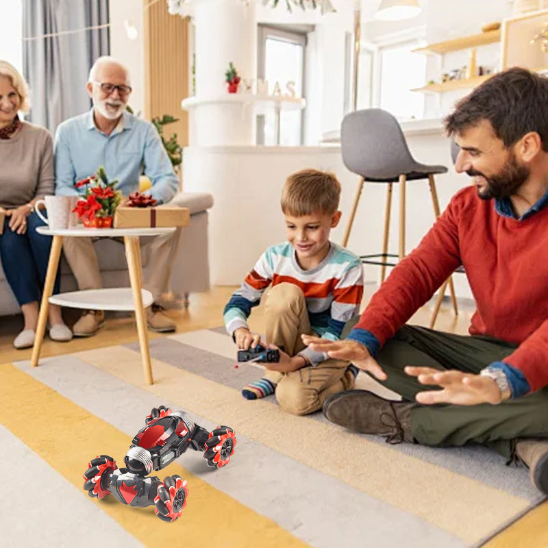 DUAL-MODE REMOTE CONTROL: Equipped with both a watch-style gesture remote control and a traditional handheld remote, this car offers enhanced flexibility and convenience for seamless control.