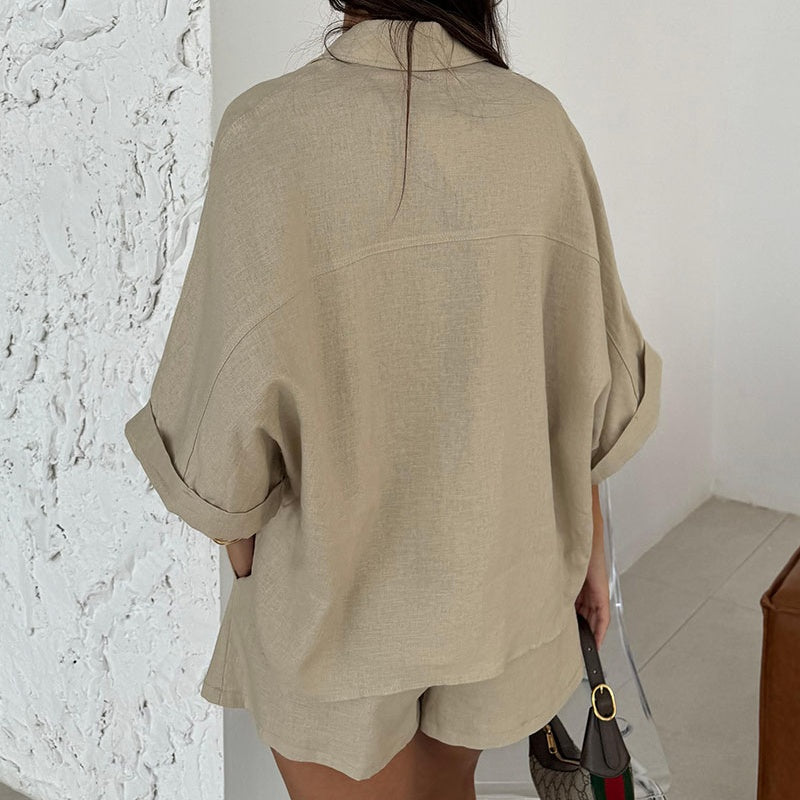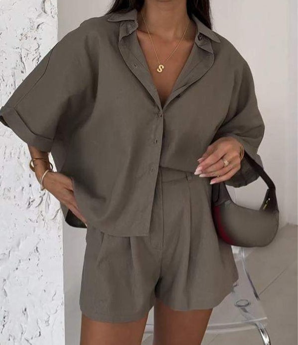 🎁2025 New Arrive - 40% OFF🎁✨ Women's Casual Lapel Top & High-Waisted Shorts Set – Effortless Style & Comfort! 🌸
