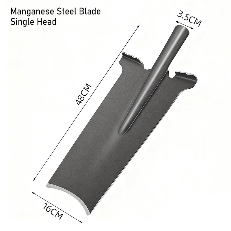 PREMIUM MANGANESE STEEL CONSTRUCTION: Forged from high-grade manganese steel, this shovel delivers exceptional hardness and corrosion resistance. It maintains sharpness and structural integrity even under heavy use in tough soil conditions.
