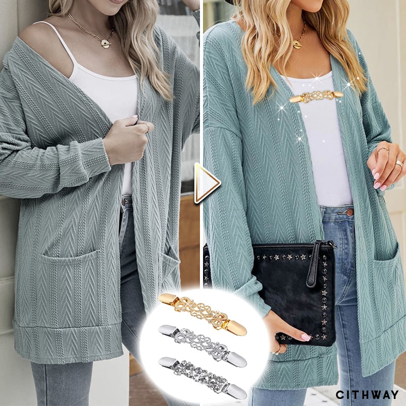 Give your cardigans and shawls a glamorous solution to keep in place with these high-fashion retro cardigan safety clips!