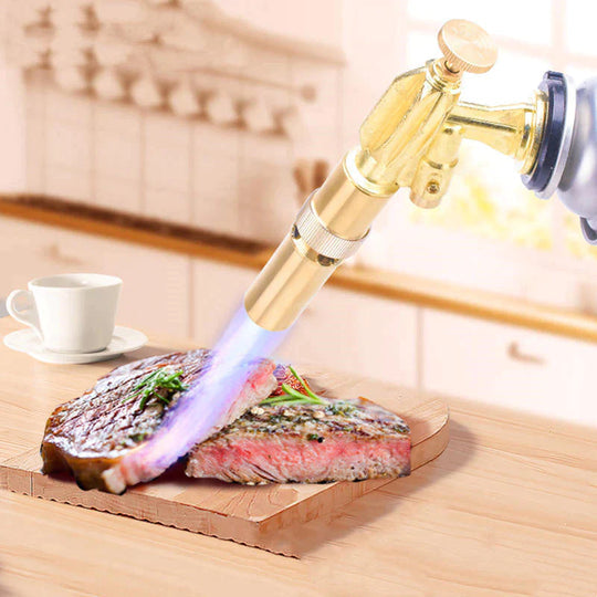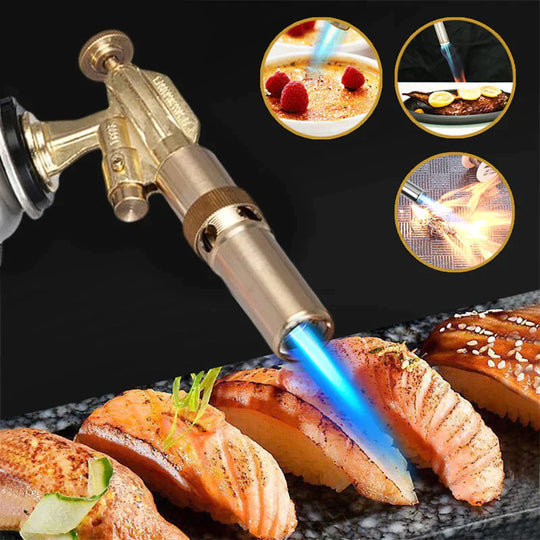 Cooking totch with safety lock to prevent accidental ignition, a wide base prevents the food torch from tipping over. Professional piezo ignition technology make the operation of the torch safer. Aluminum alloy nozzle can withstand high temperature, make the torch use longer.