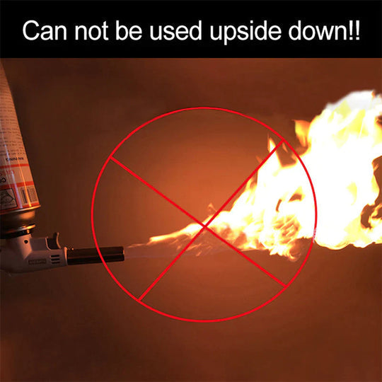 - Flame Mode- Adjust the temperature range by the GAS button. Adjustable temperature can reach up to 1300 °C/2372 °F. Press the ignition button to light fire, turn the safety lock clockwise at the same time. Then it will keep firing without your pressing. You can achieve one-hand operation.