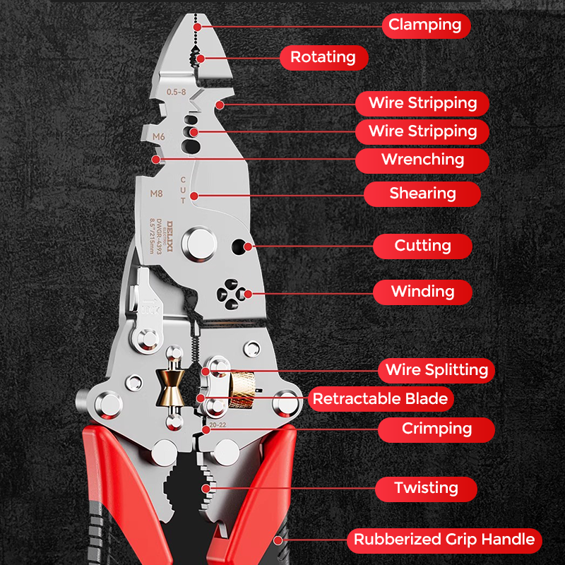 MULTIFUNCTIONAL 16-IN-1 TOOL: Combines wire stripping, cutting, splitting, wrenching, tube twisting, and more—ideal for various electrical and mechanical tasks.