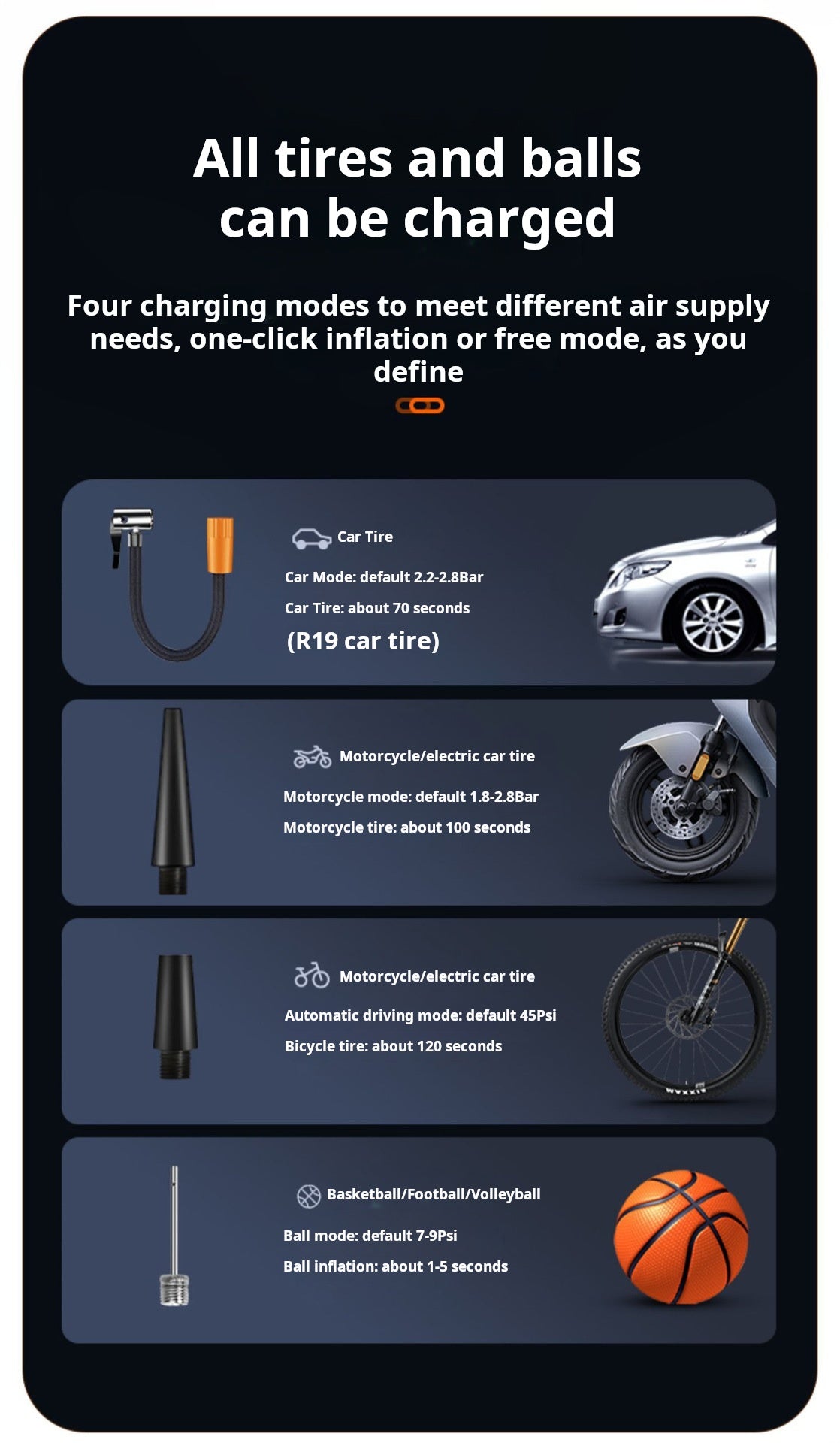 Portable intelligent wireless digital inflation pump, multifunctional tire, basketball, bicycle, emergency inflation