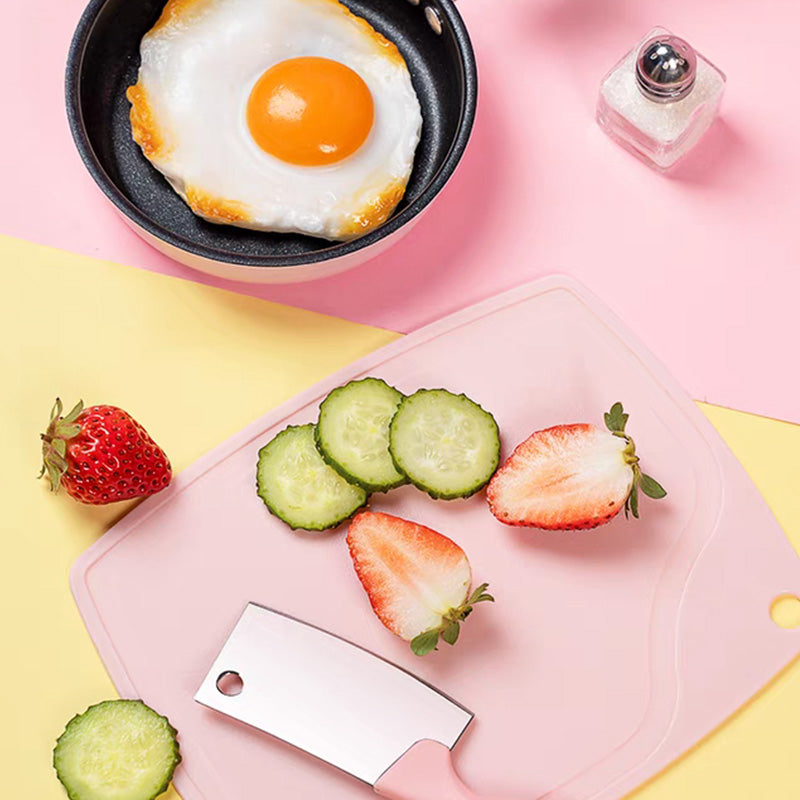 COMPLETE CHILDREN'S KITCHEN SET - There are a total of 18 items in the set, including 1 induction cooker, 1 frying pan, 1 spatula, a pair of chopsticks, a knife, a pair of tongs, 6 molds, a cutting board, a bowl, and a dumpling maker. It also includes an apron, a sleeve cover, and a cleaning sponge. The set is comprehensive and provides a strong sense of experience.