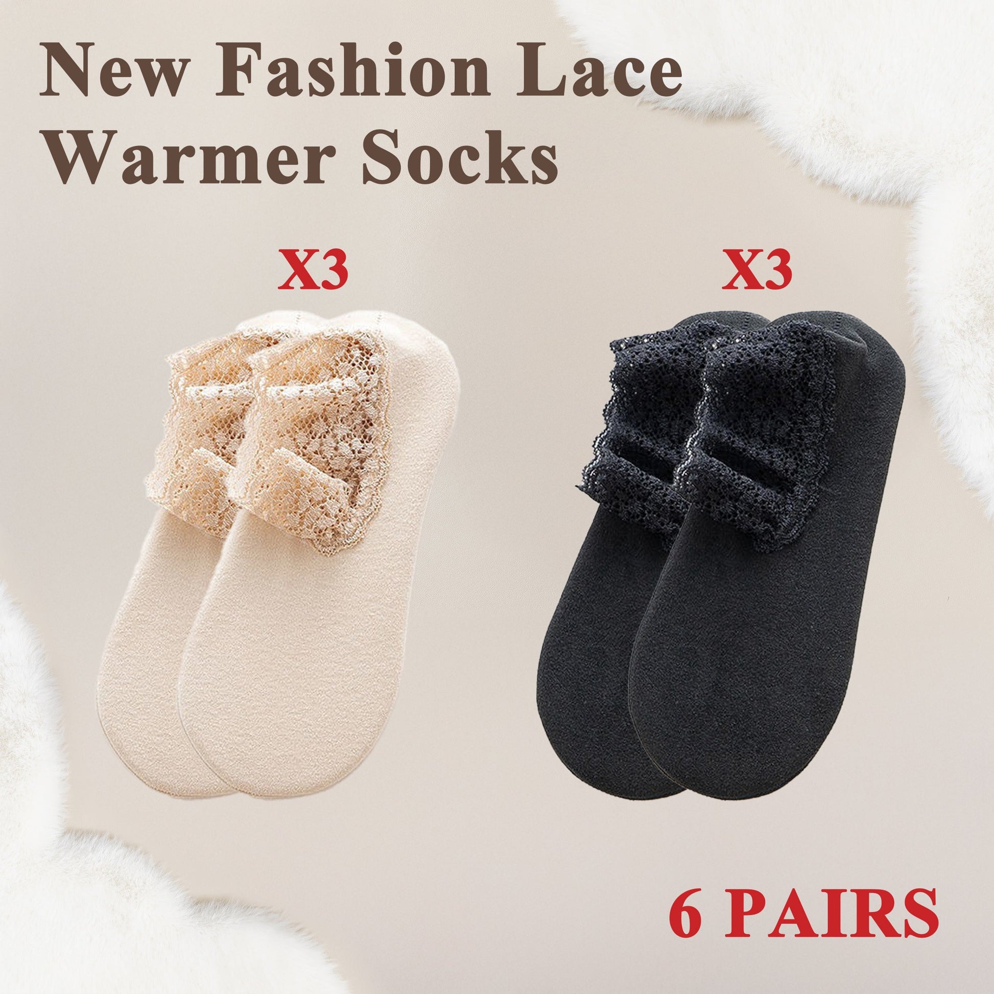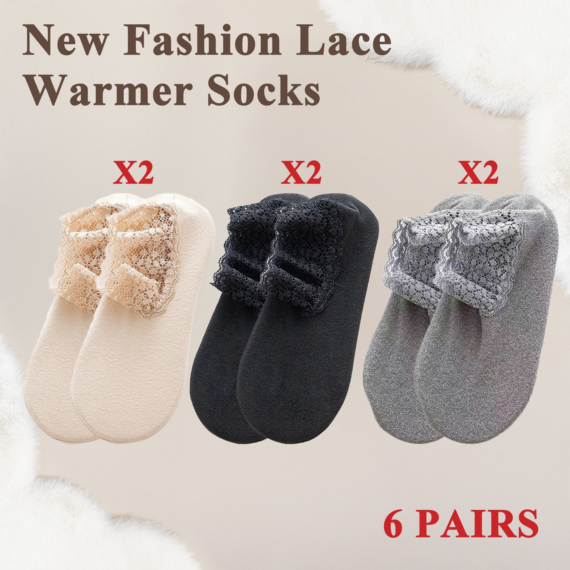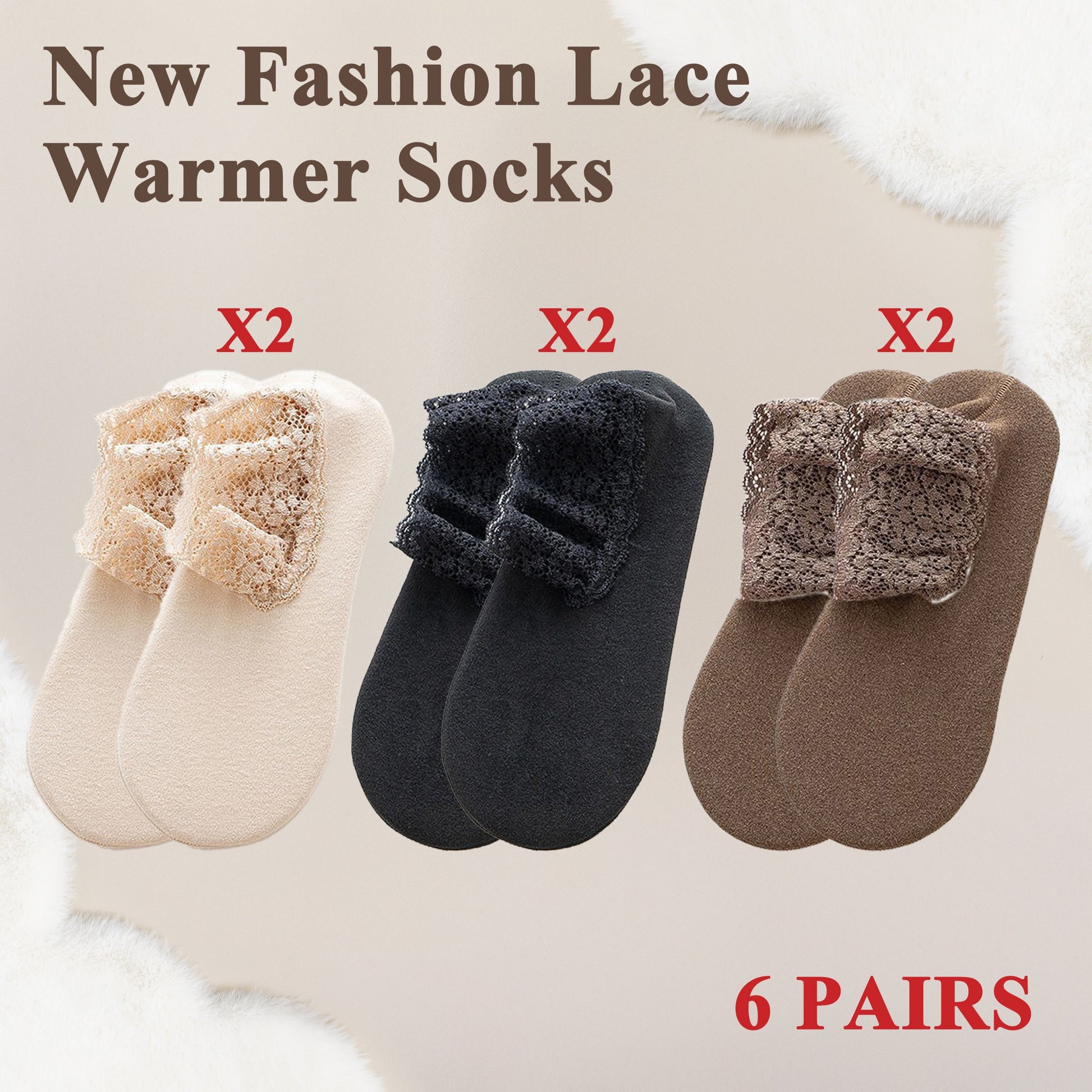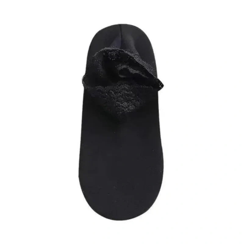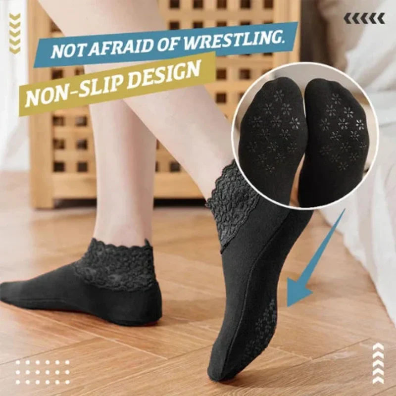 VERSATILE AND STYLISH - The soft, fashionable lace design is perfect for various occasions. With non-slip soles, they stay securely in place, even when worn without shoes.