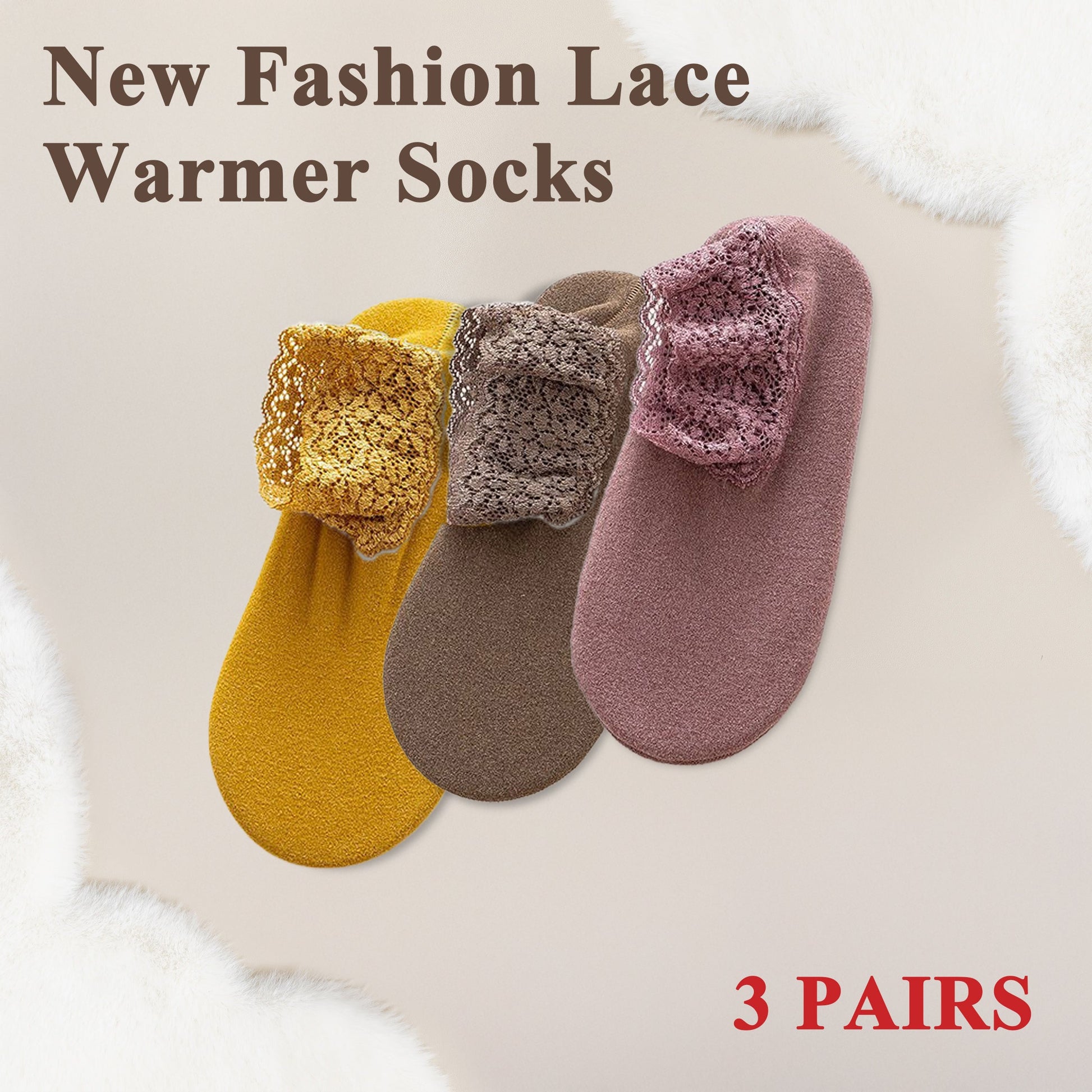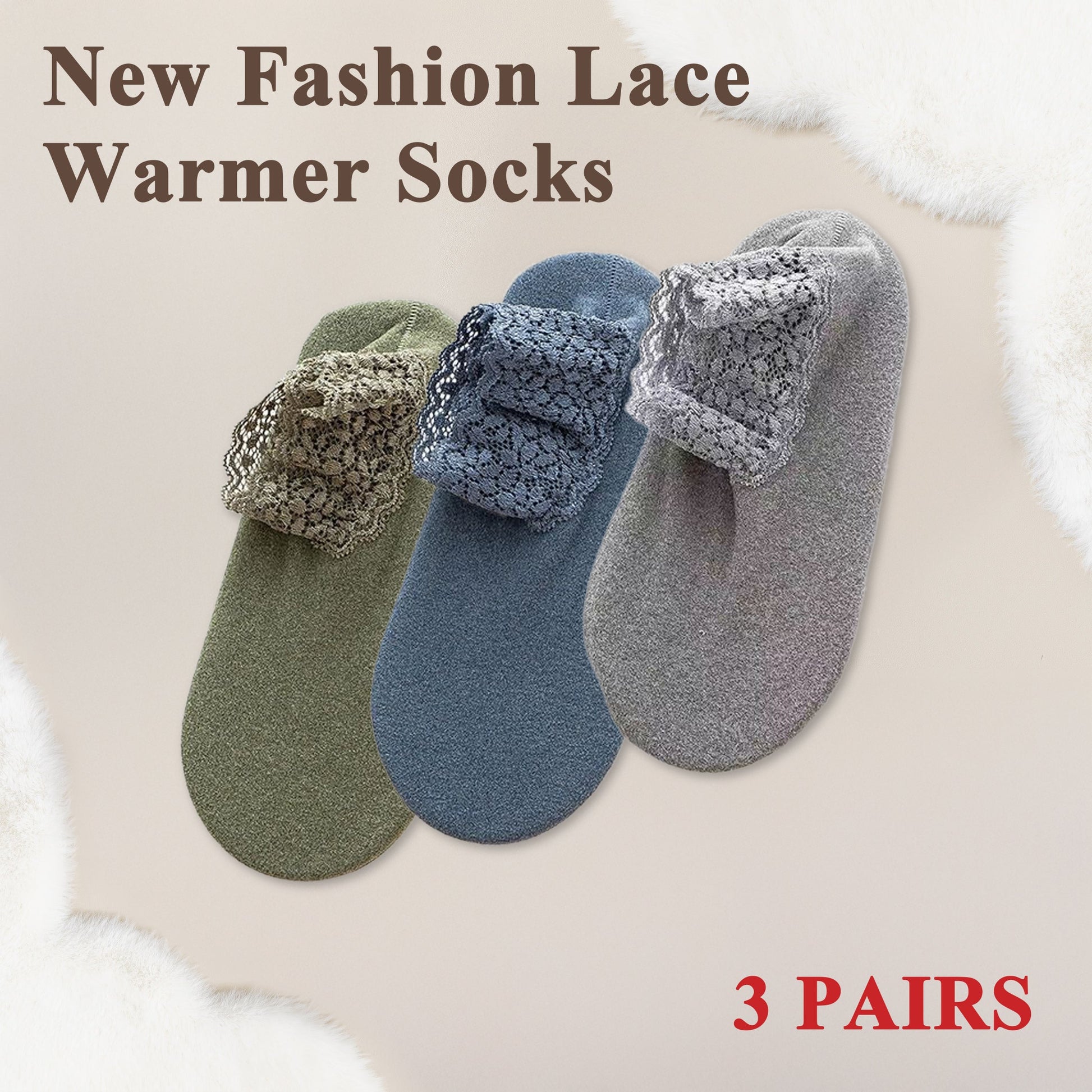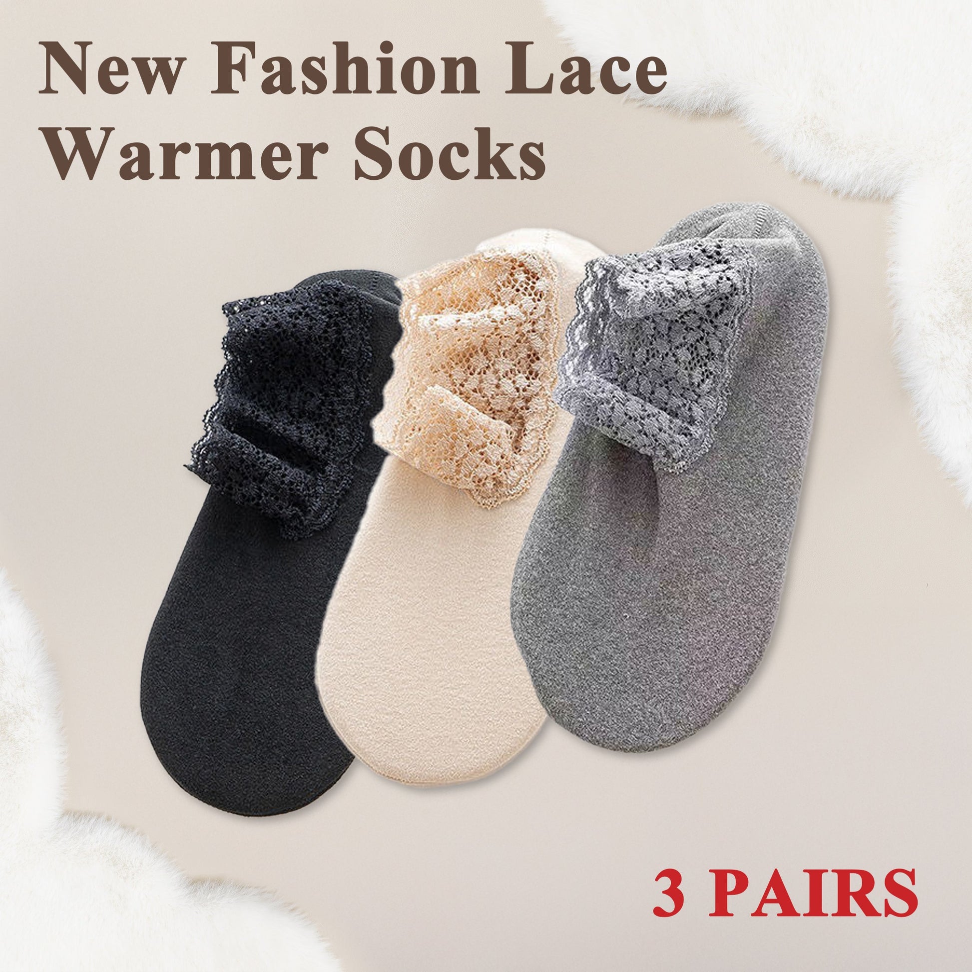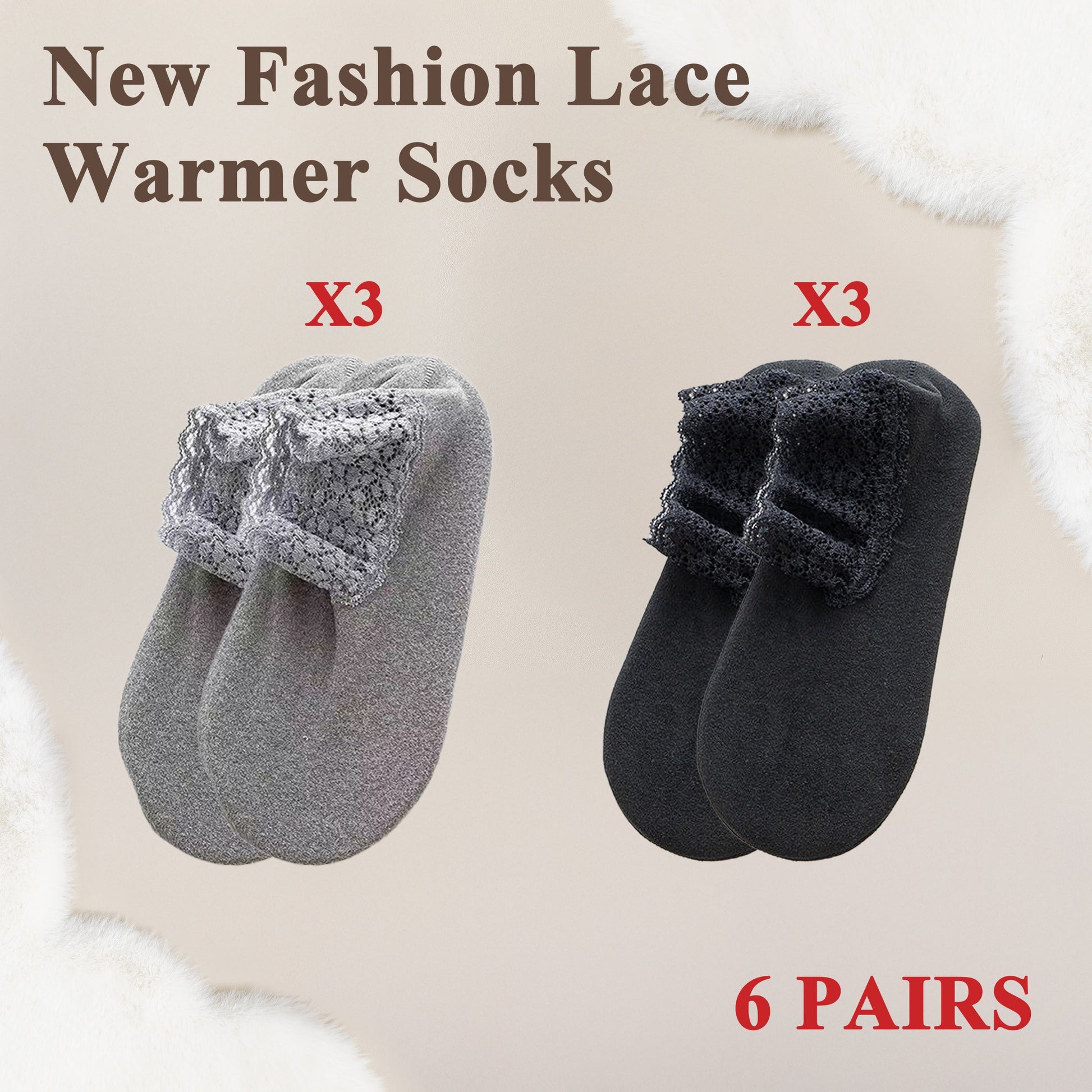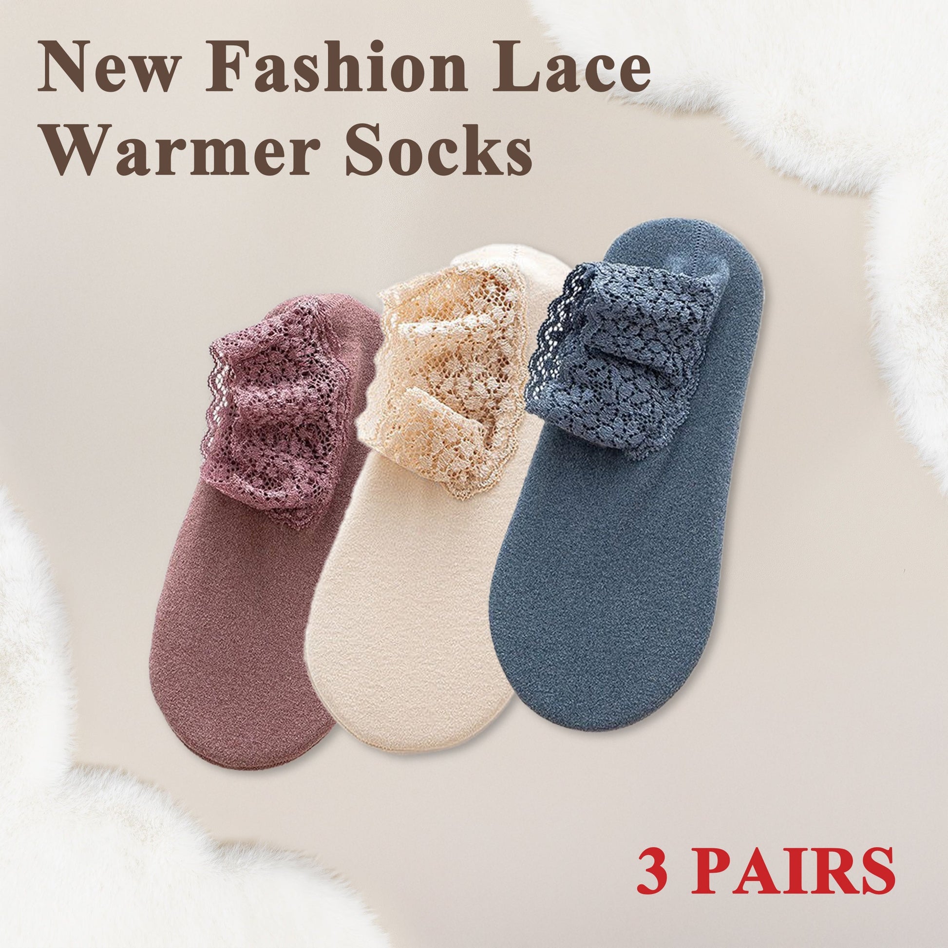 VERSATILE AND STYLISH - The soft, fashionable lace design is perfect for various occasions. With non-slip soles, they stay securely in place, even when worn without shoes.