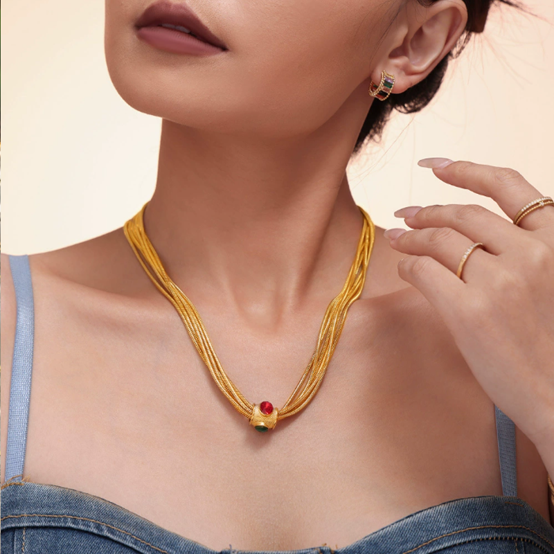 ✨💎Layered Chains Rhinestone-Encrusted Necklace and Bracelet