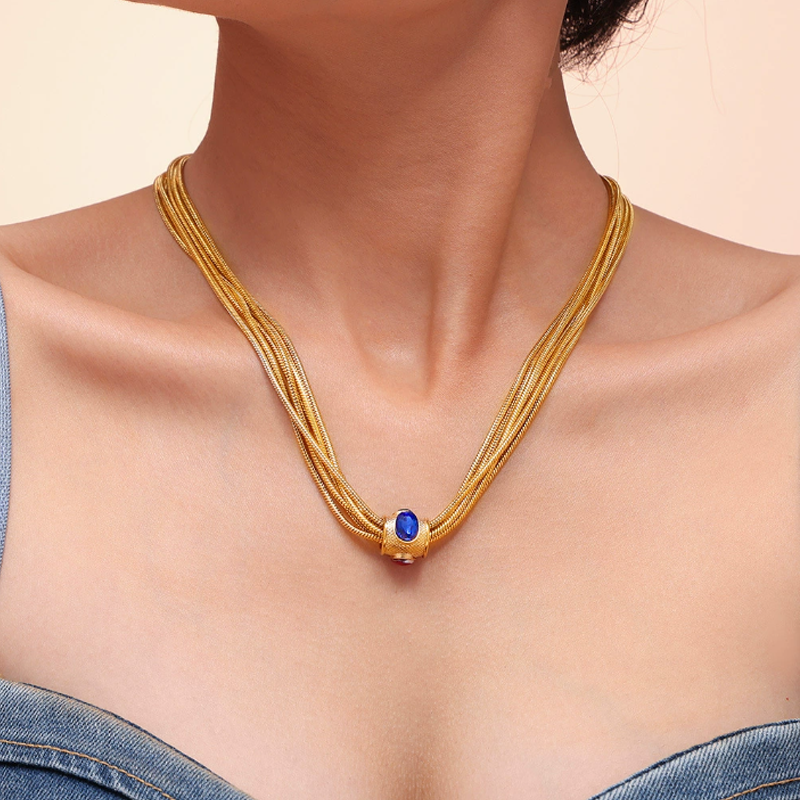 DIMENSIONAL-SPARKLE-IMPACT - Create instant head-turning radiance. Expertly layered chains catch and reflect light from every angle, amplified by precisely set rhinestones. This isn't subtle shimmer; it's a deliberate cascade of brilliance designed to make you the focal point. Experience the confidence of knowing your accessories command attention and elevate your presence effortlessly.