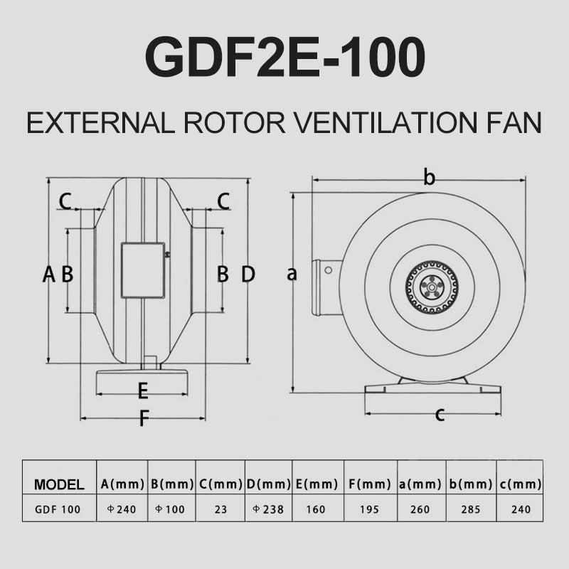 Model: GDF2E-100 External Rotor Ventilation Fan