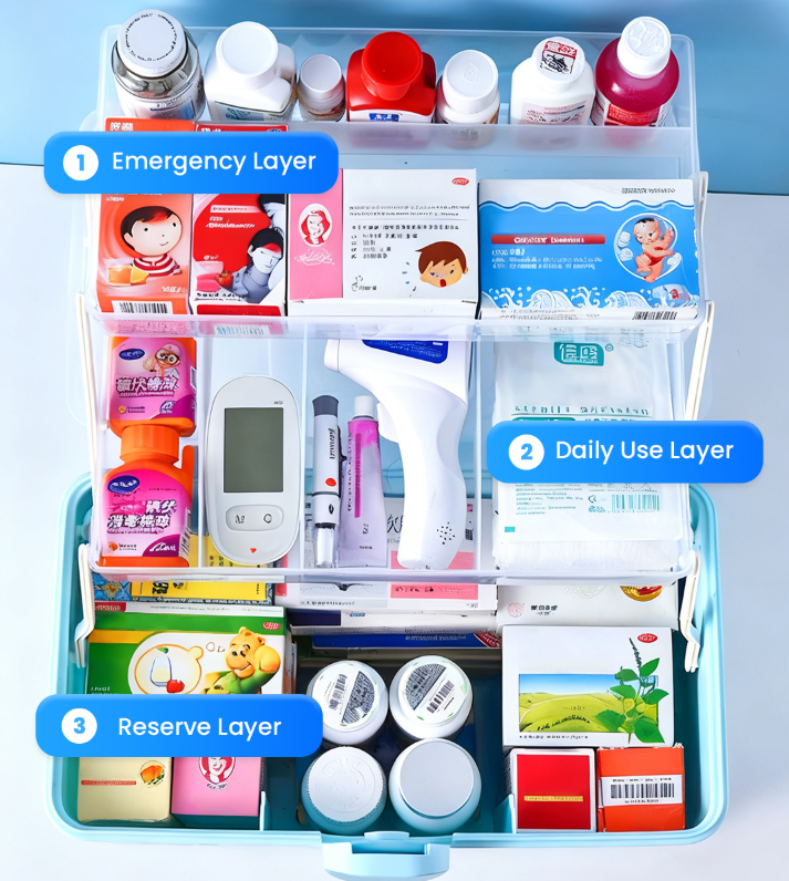 3-TIER CLASSIFICATION: Smartly organized into three sections for effortless access. The top layer is an emergency zone for quick-grab items, the middle for daily-use medications, and the bottom for backups. No more fumbling during urgent situations—everything has its place.
