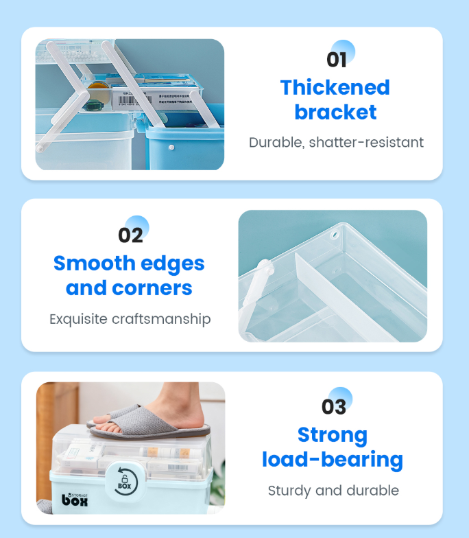 LARGE CAPACITY: Store all your essential medications in one organized space. With ample room for pills, ointments, and first-aid supplies, this medicine box eliminates clutter and ensures everything is within easy reach when you need it most. Perfect for families or individuals with multiple prescriptions.