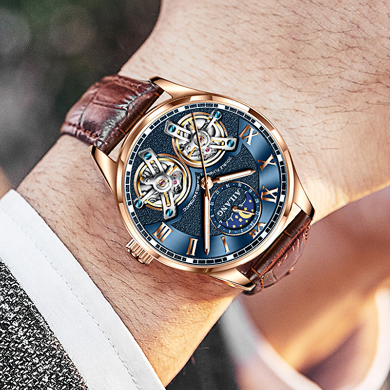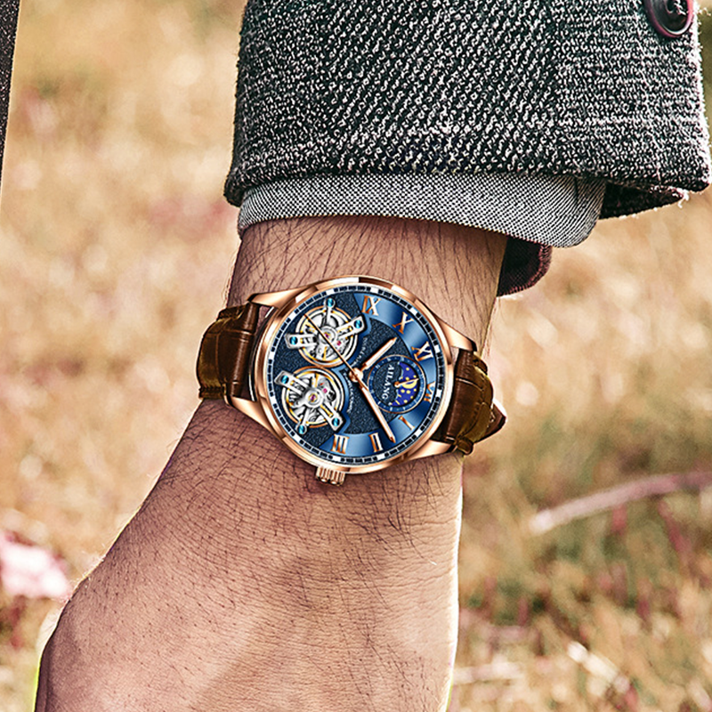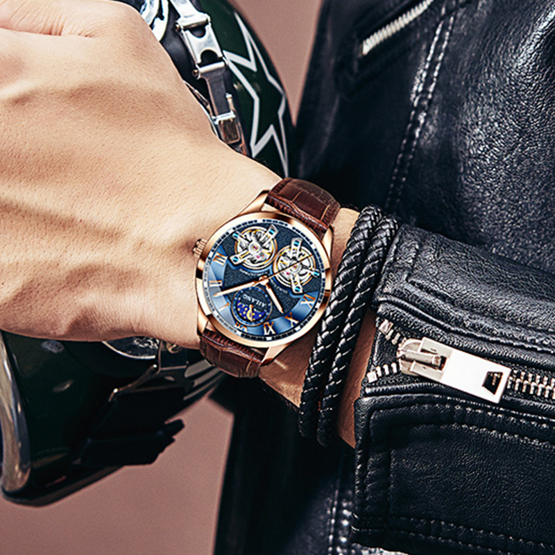 AUTOMATIC SELF-WINDING MECHANISM – No battery needed. Powered by the natural motion of your wrist, this mechanical watch automatically winds itself, offering a hassle-free and eco-friendly way to keep time.