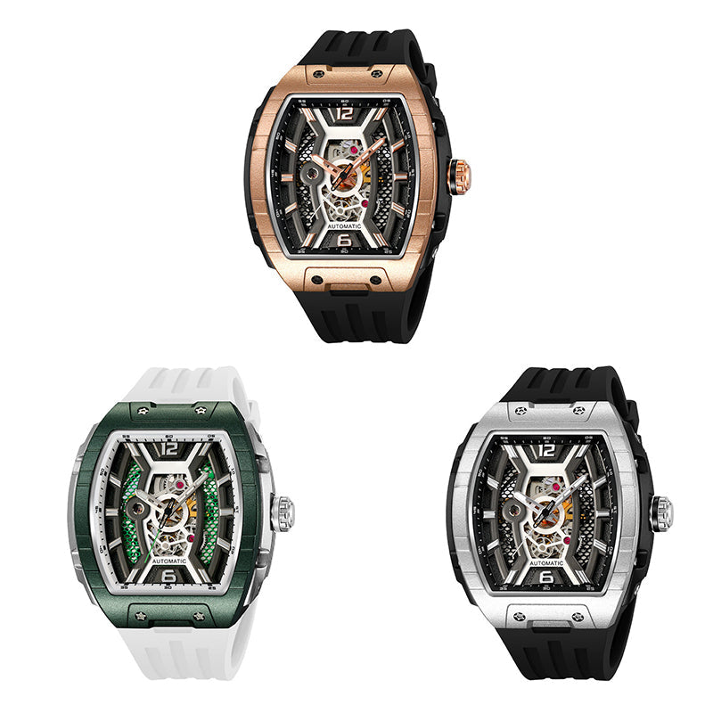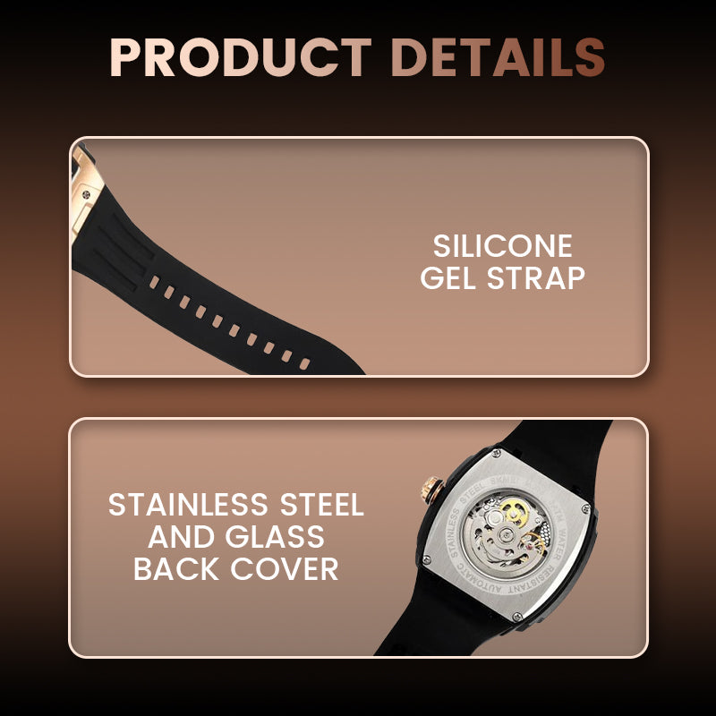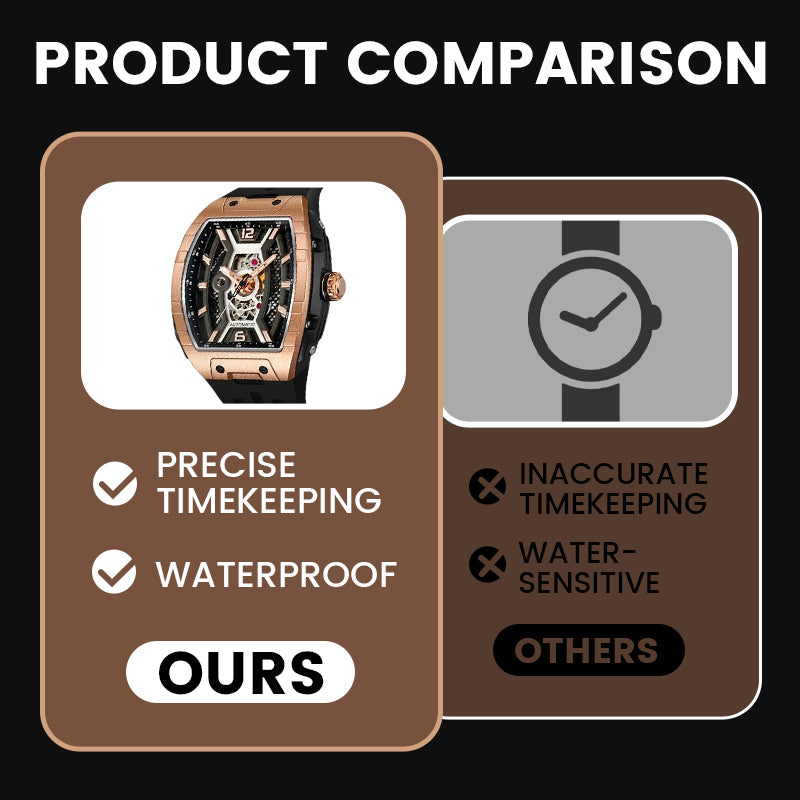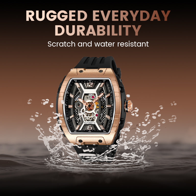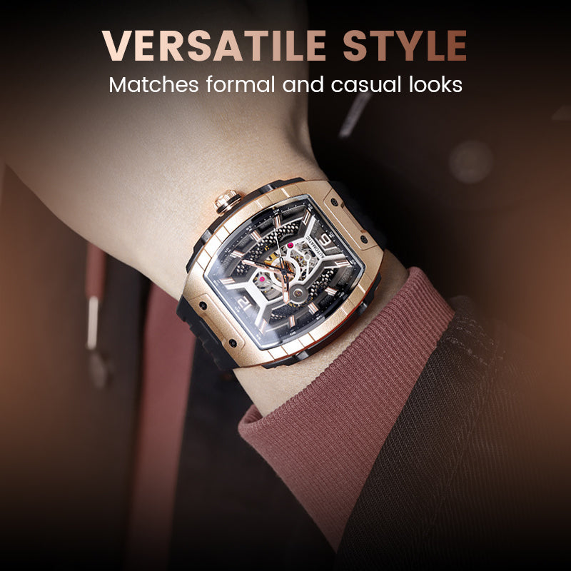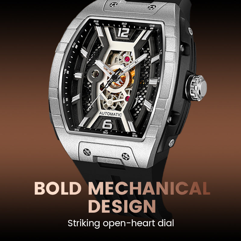 EYE-CATCHING MECHANICAL ART - This isn't just a watch - it's wrist sculpture. The daring color contrasts and exposed mechanical heart turn heads in boardrooms and bars alike. Where other watches tell time, this one tells your story of bold sophistication.
