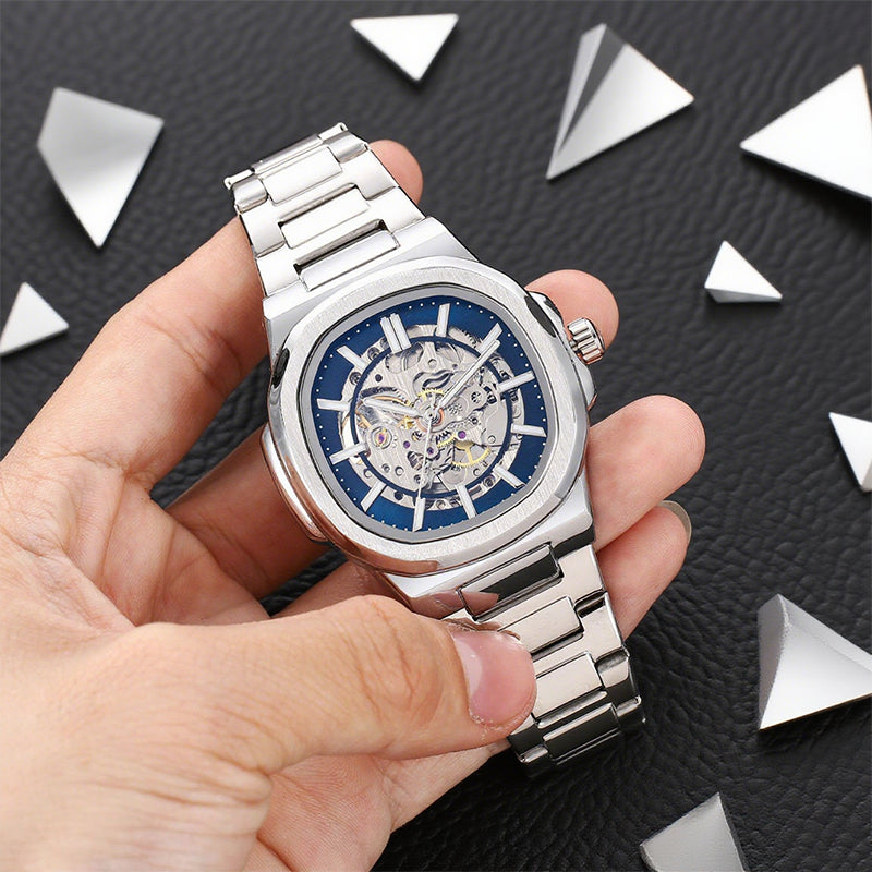 PRECISE MOVEMENT – The skeleton watch features a high-quality movement that guarantees accurate timekeeping. Each component is carefully aligned to provide consistent performance, combining functionality with aesthetics. The transparent dial highlights the technical artistry behind the movement.