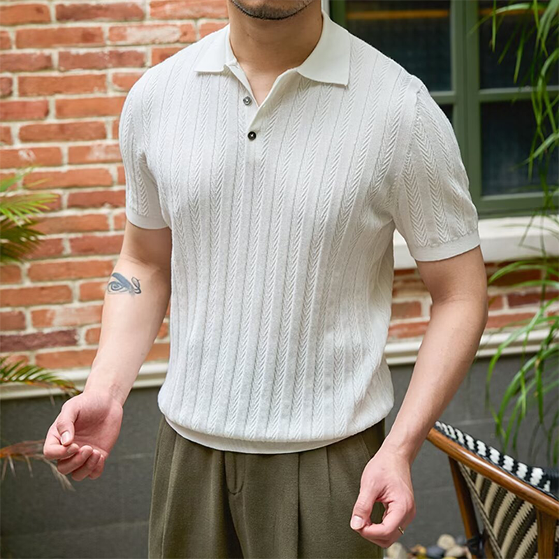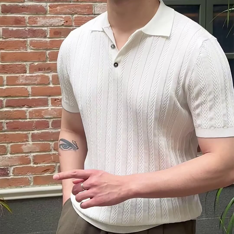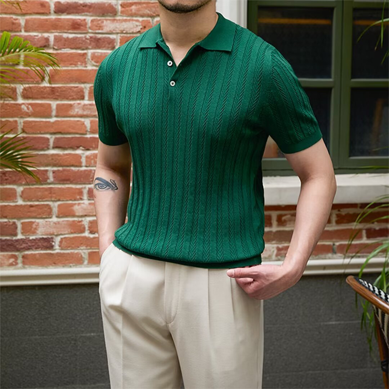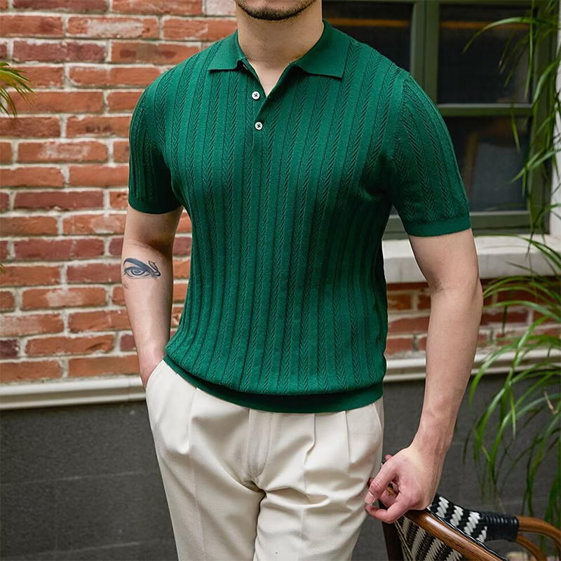 👑Men's Old Money Casual Solid Color Lapel Short Sleeve Top