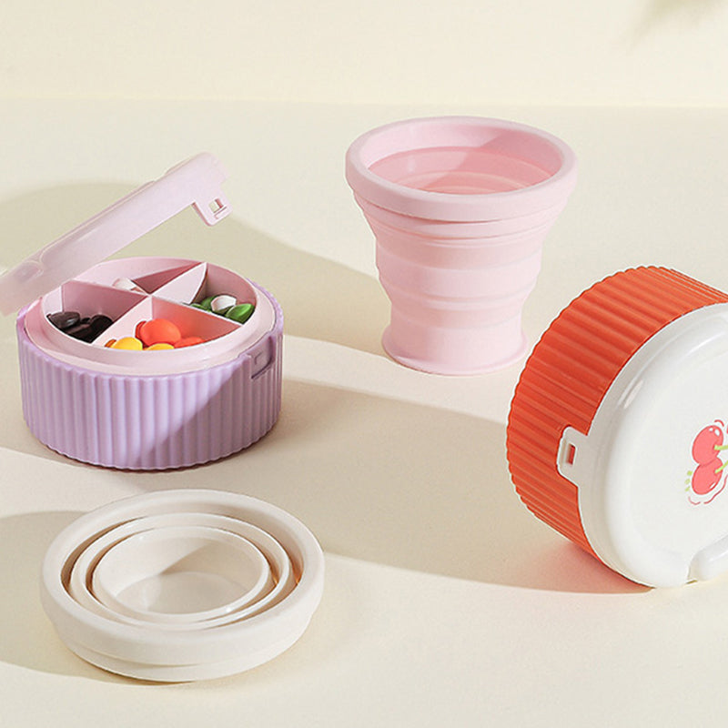 LEAK-PROOF & DURABLE: The tight-sealing silicone cup and secure pill compartments prevent spills even when carried in a bag. The rugged ABS construction withstands daily use while maintaining its structural integrity through repeated folding and unfolding.