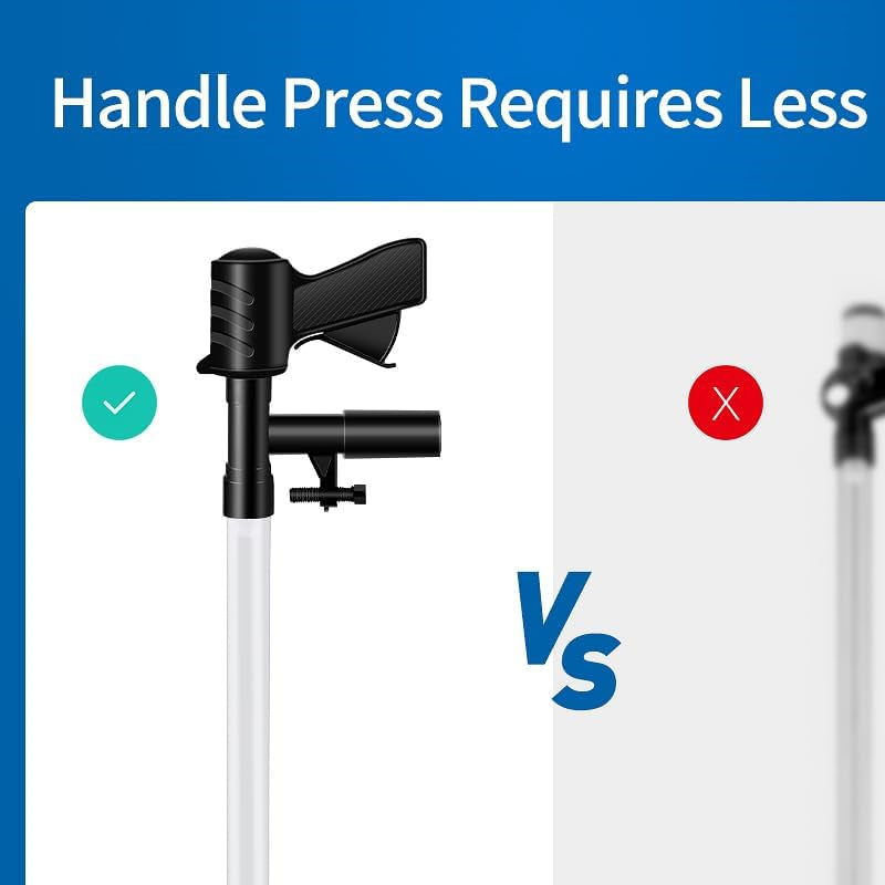SIMPLE & QUICK WATER CHANGING: This pneumatic aquarium water changer simplifies the process with just a few squeezes of the ergonomic handle. The design directs water and debris flow efficiently, allowing you to remove dirty water without disturbing fish or plants. The transparent tube lets you monitor the cleaning process, ensuring a mess-free experience.