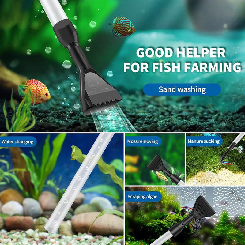 HUMANE FISH-SAFE DESIGN: The kit includes an internal anti-backflow valve and a gravel filter basket that blocks large debris, preventing small fish from being sucked in. This thoughtful design protects your aquatic pets while maintaining clean water, making it safe for both beginners and experienced aquarists.