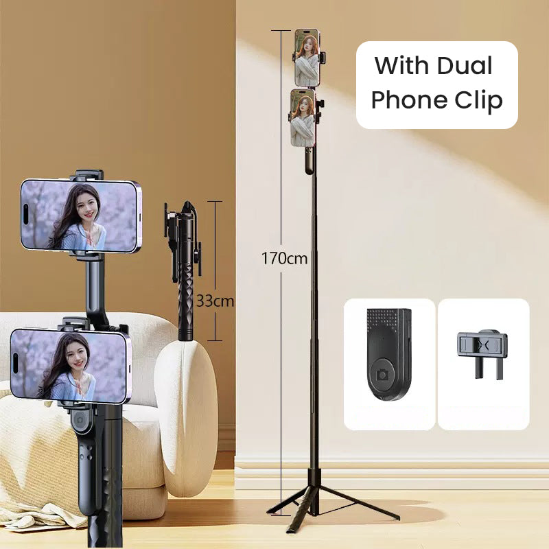 BUILT-IN SELFIE STICK: The gimbal comes with an extendable selfie stick for added versatility. Capture wider angles, group shots, and dynamic selfies with ease, making it the perfect tool for both video and photo needs.