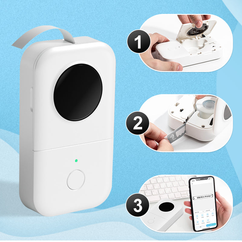 Package Included: 1 * Portable Mini Bluetooth Wireless Label Printer, 1 * 12*40mm Label Roll (80 Sheets)