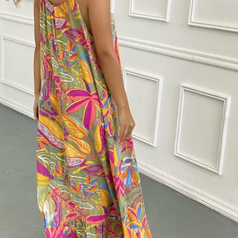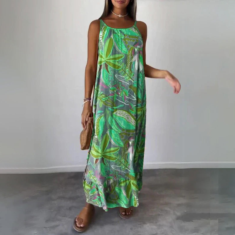 Step into style and comfort with the Printed Sleeveless Long Dress. This fashionable dress features a stunning print and offers a perfect blend of elegance and ease for any occasion.