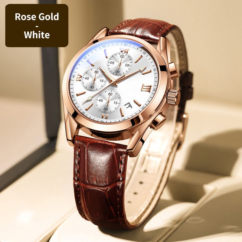 LEATHER BAND: The premium leather strap offers comfort and durability, providing a classic touch that complements various styles.