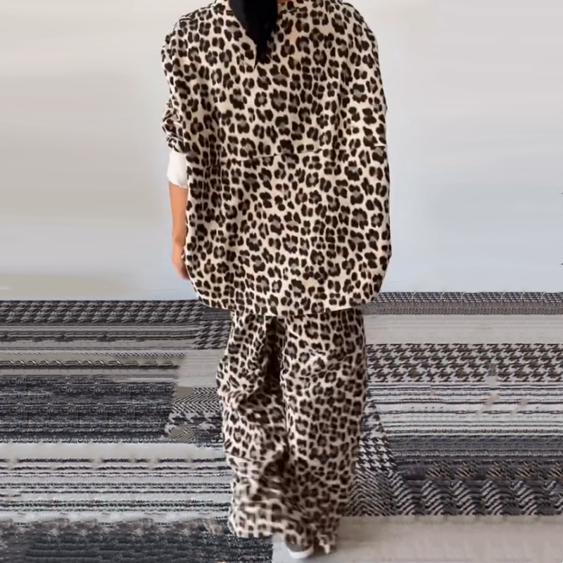 LEOPARD PRINT DESIGN: The entire outfit features a stylish and beautiful leopard print pattern. This eye-catching, modern design adds a fashionable touch to your casual look without being too bold.