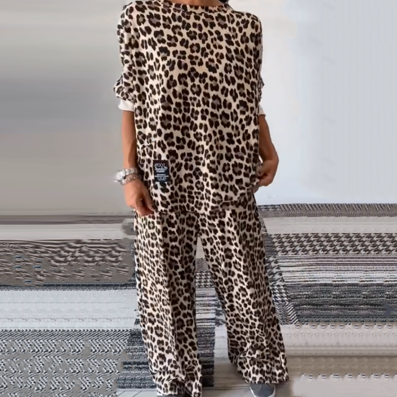🎉Happy New Year! 50% OFF 🛍️Round-Neck Leopard Print Tops & Pants Two-Piece Set