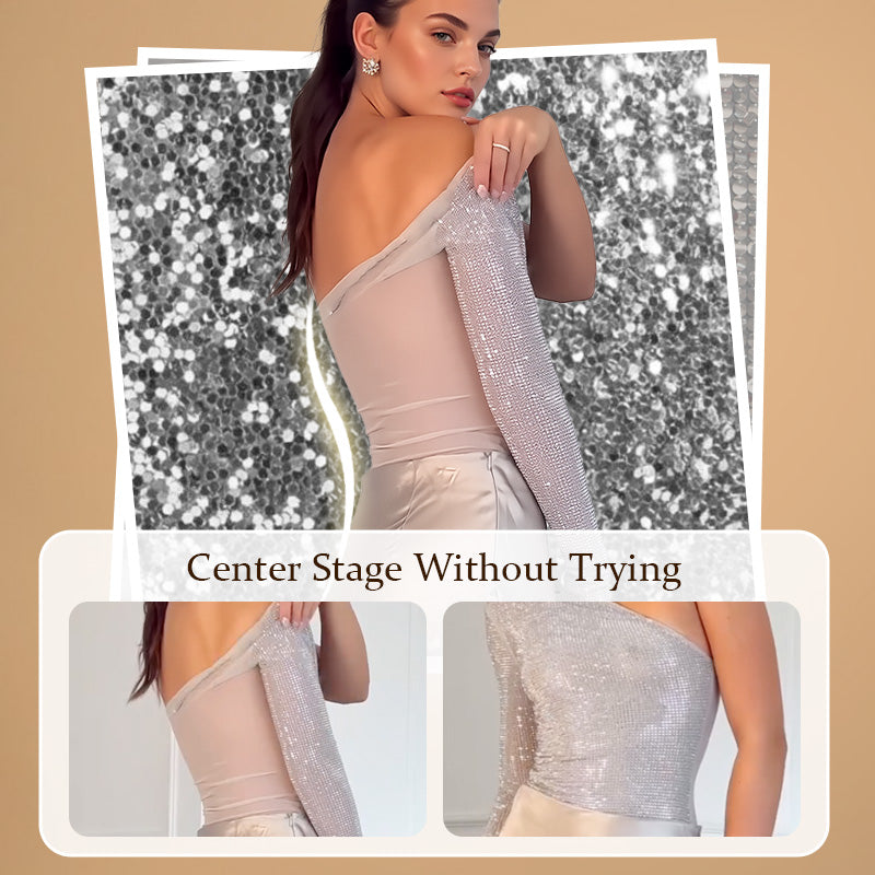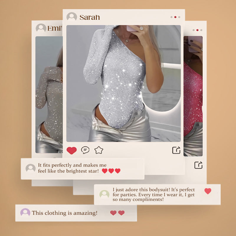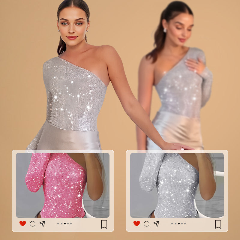 🎉👗The Summer Hot Sale 50% OFF 🛍️Women's One Shoulder Sequin Bodysuit