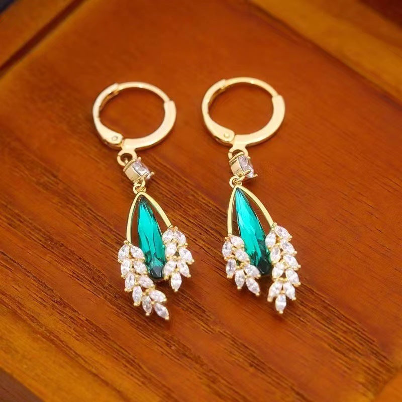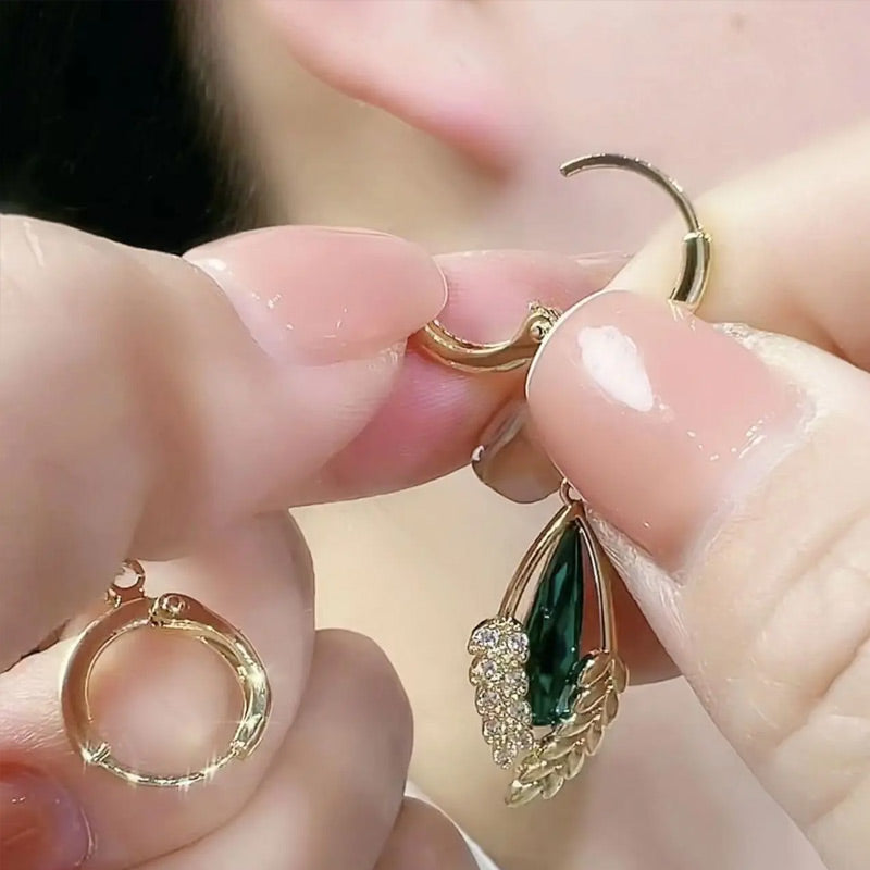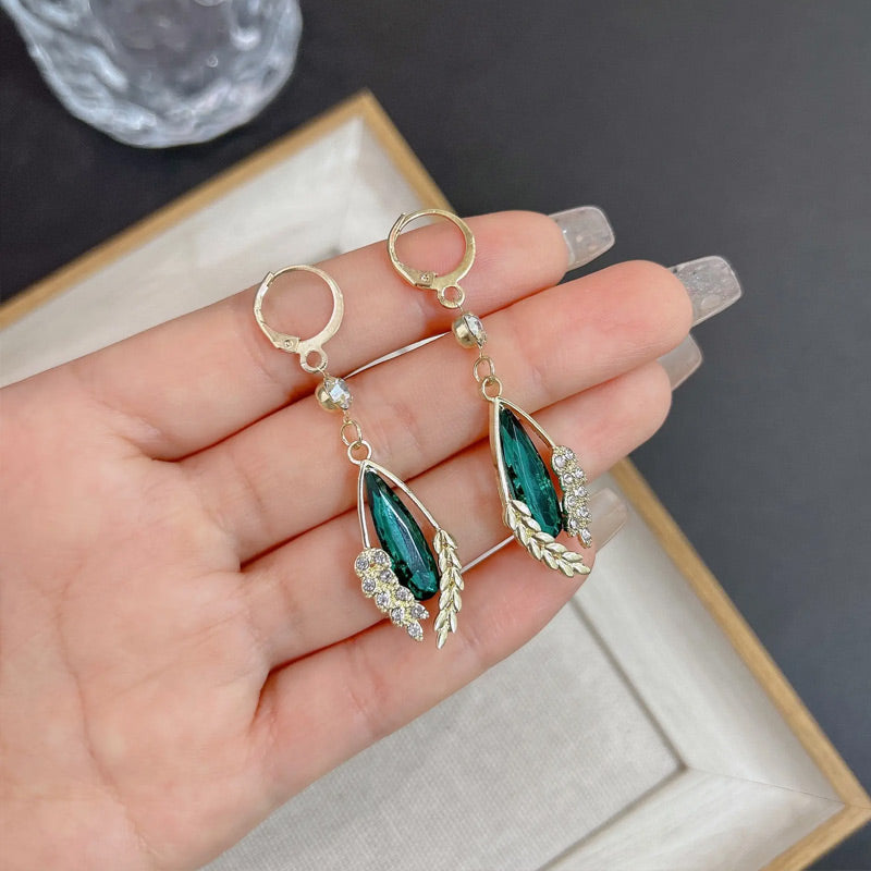 DELICATE & ELEGANT DESIGN – Golden wheat-shaped design, set with rhinestones, encircles green teardrop-shaped rhinestones, creating a delicate look that captures light beautifully and adds elegance.