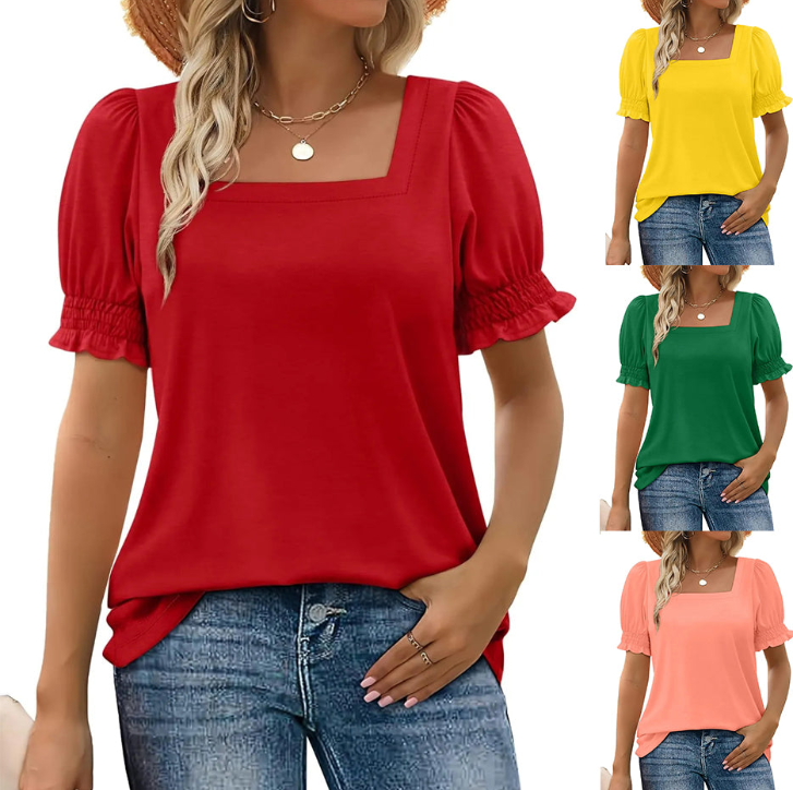 🍃Women's Casual Square Neck Smocked Sleeve T-Shirt(BUY 2✈️ Free shipping)